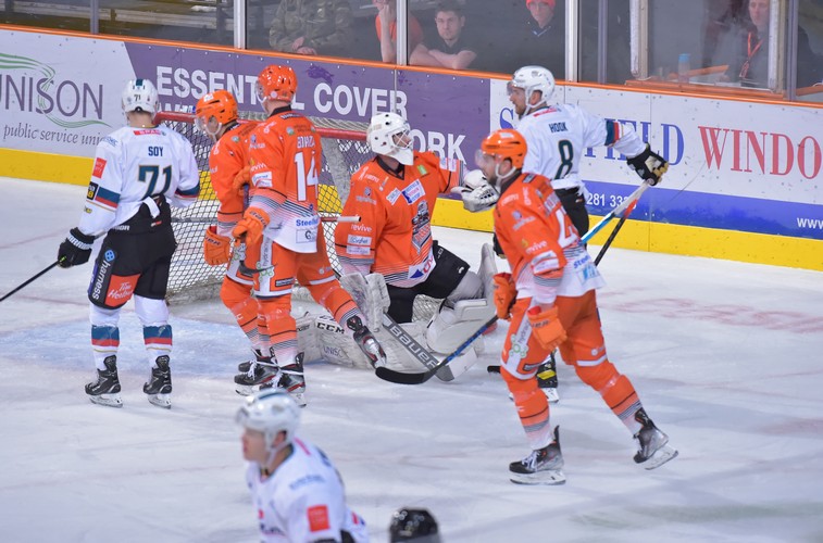 Belfast Giants are now just one win away from lifting the 2021/22 Premier Sports Elite League title after a 3-1 road win against fellow contenders Sheffield Steelers on Saturday night.