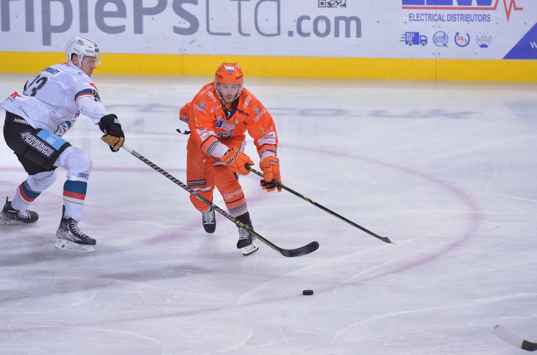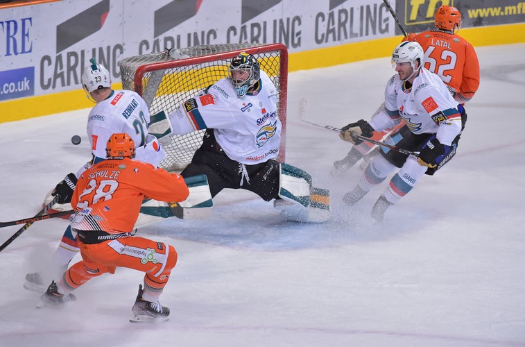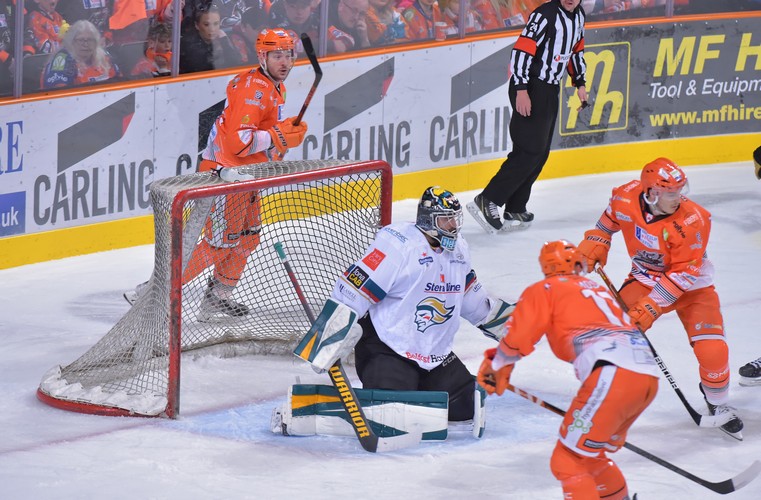 Mark Cooper gave the Giants the lead 6:33 into things on the powerplay with a slot from the slot that found its way through. Just over two minutes later, the league’s top line of JJ Piccinich, David Goodwin and Scott Conway combined for Piccinich to double the visitors’ lead at 8:41 – Conway broke up ice after a turnover, and played it to Goodwin who fed Piccinich for the back-post finish.