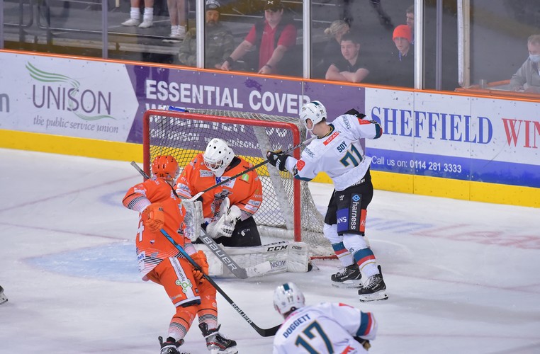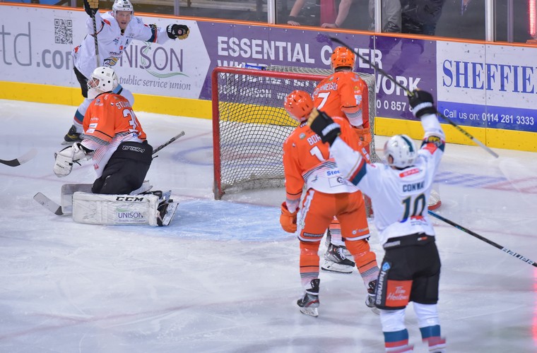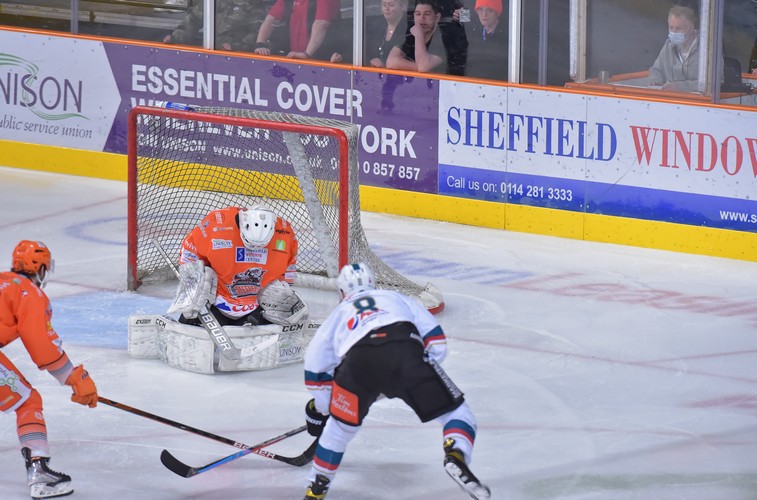 Sheffield started period two strong and were level 38 seconds in thanks to a snipe from Tanner Eberle that flew past Beskorowany into the top corner. Rok Stojanovič made the save of the period with a point-blank reaction to keep the game level.