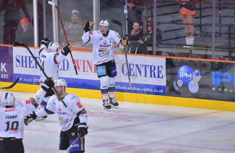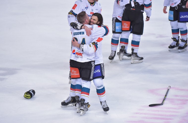 Mark Cooper put the Giants, who needed any sort of win to lift the title, into the lead just 92 seconds into the game with a powerplay goal in the slot. Tyler Beskorowany kept the visitors ahead late in the period with an excellent diving save.