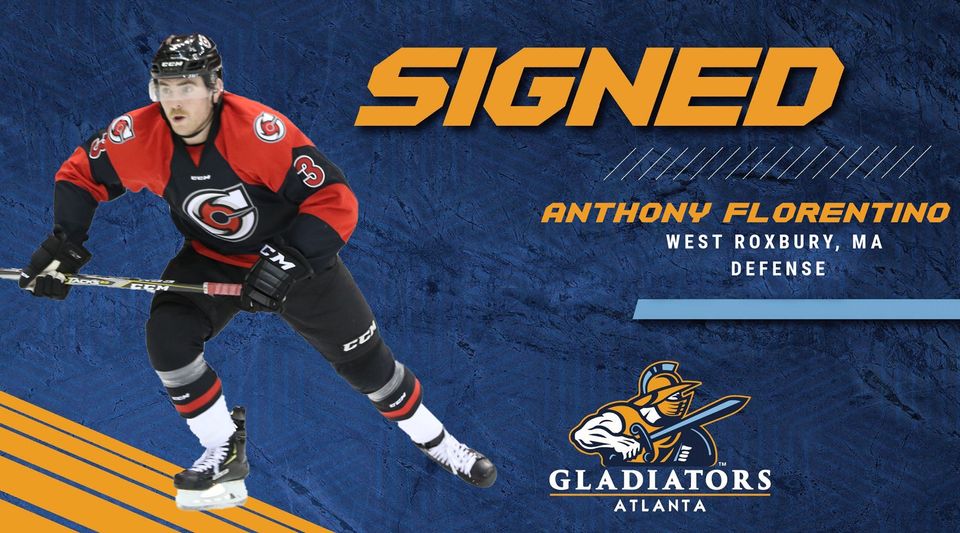 DULUTH, GA – Atlanta Gladiators President Jerry James and Head Coach Jeff Pyle announced that defenseman Anthony Florentino has agreed to terms for the 2021-22 season.
