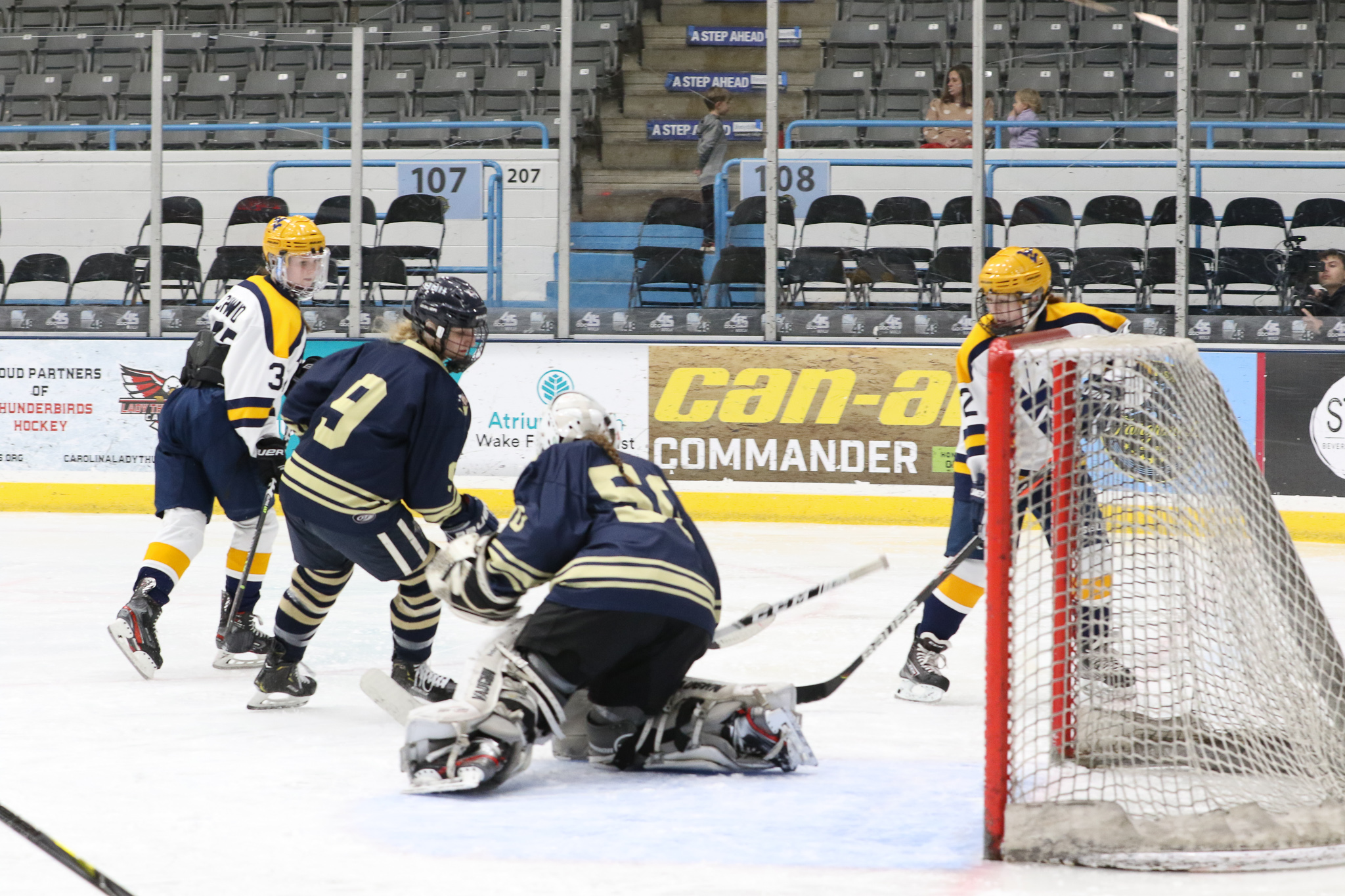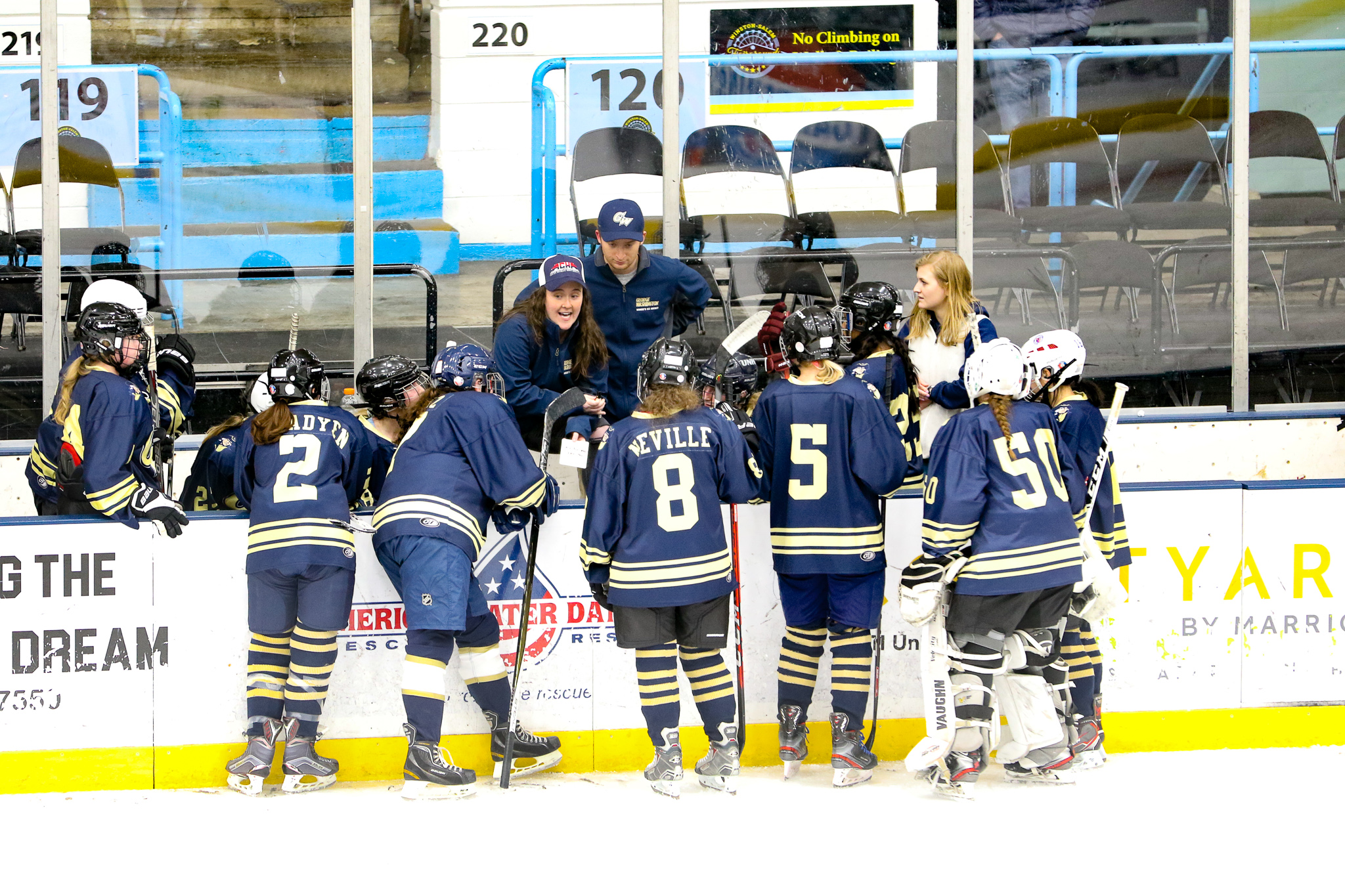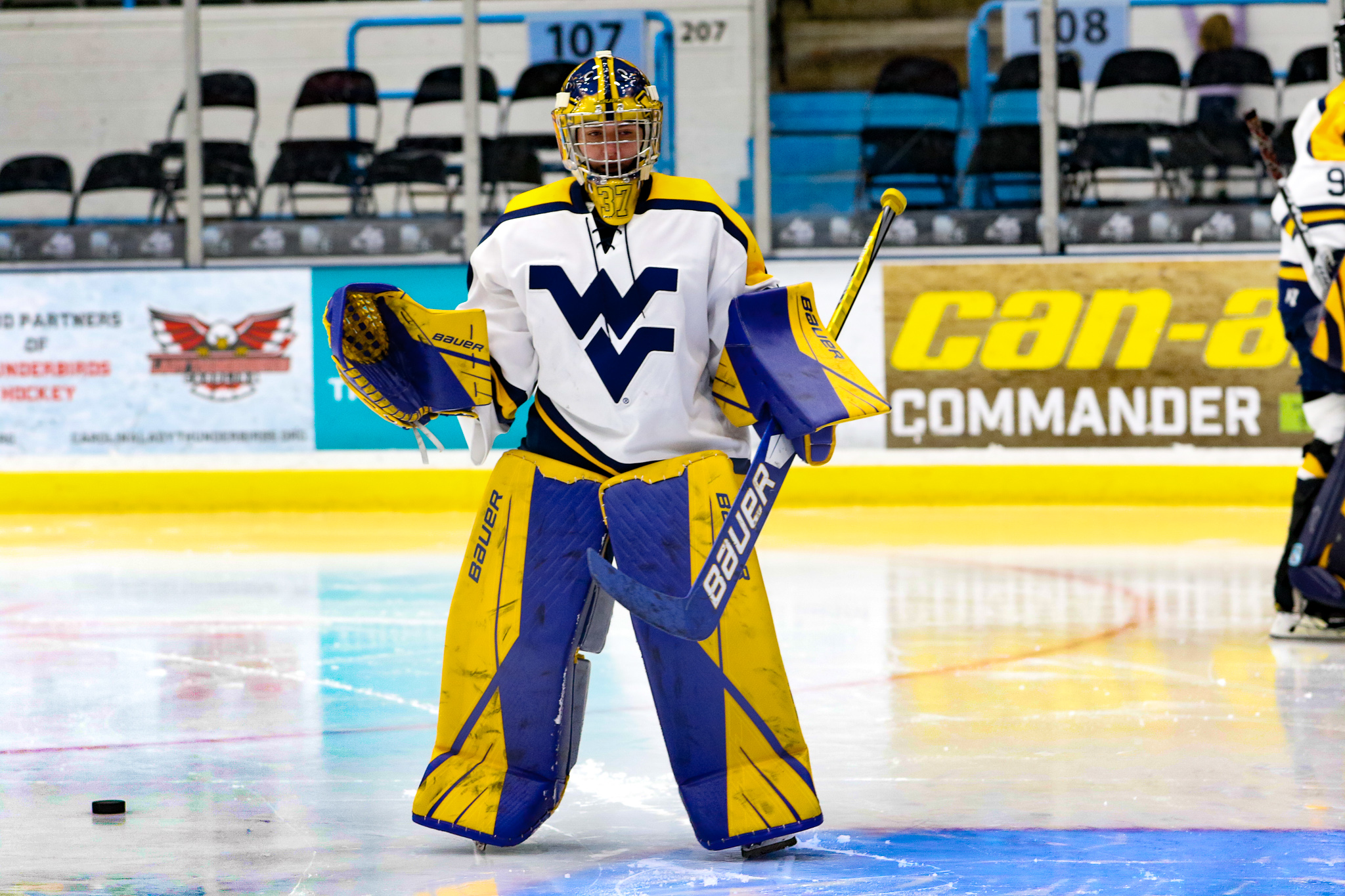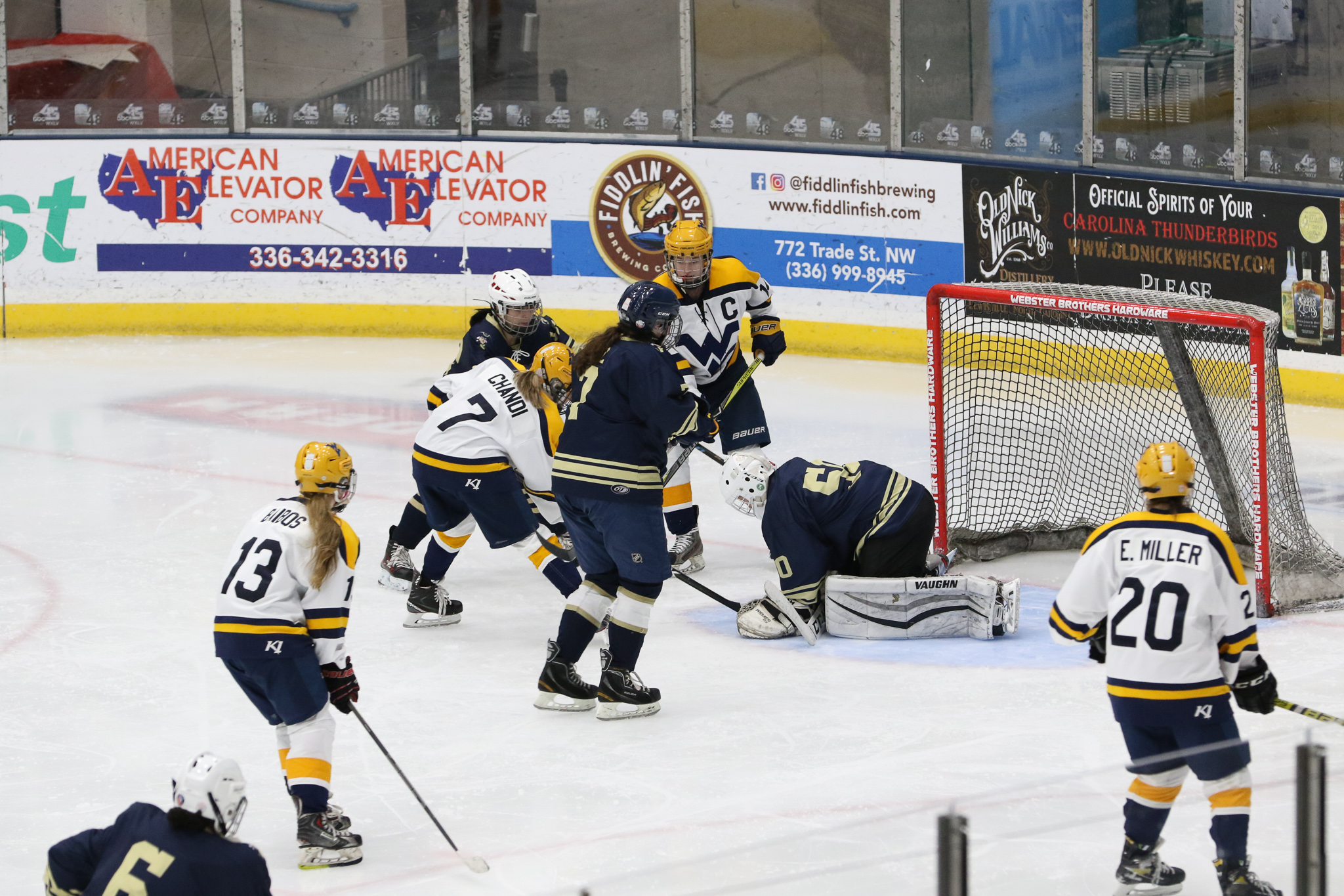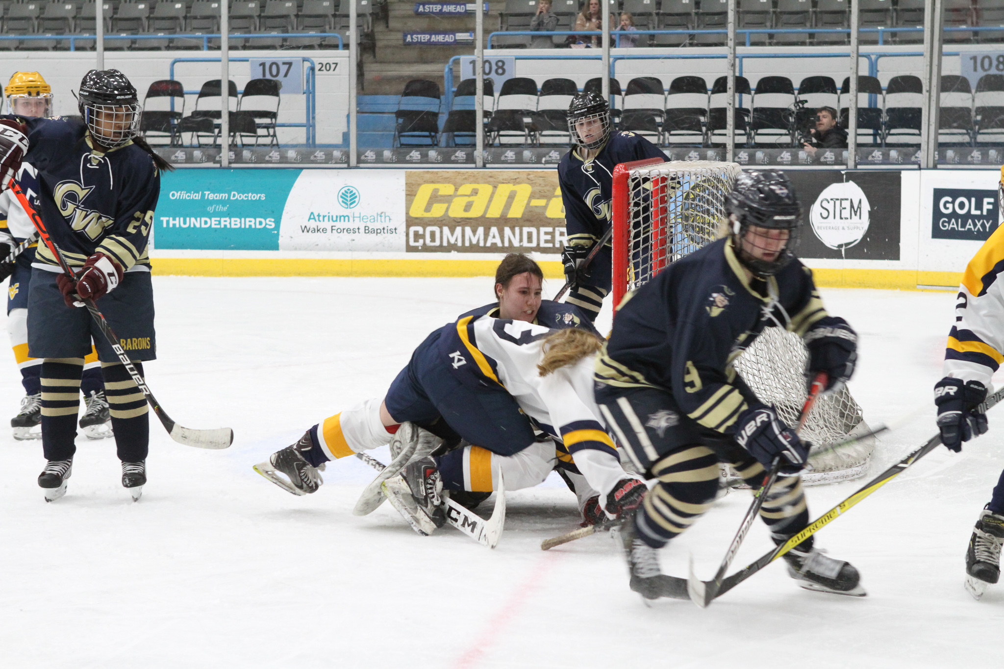 Winston-Salem, NC: While the West Virginia University women’s team defeated the George Washington University women’s team 6-1, the real story of the game was goaltending. Freshman netminder Callie Glass stopped 104 of 110 shots on goal in the second ACCHL D2 women’s semifinal game. Willow Herman, goalie for WVU only faced 18 shots, saving all but one.