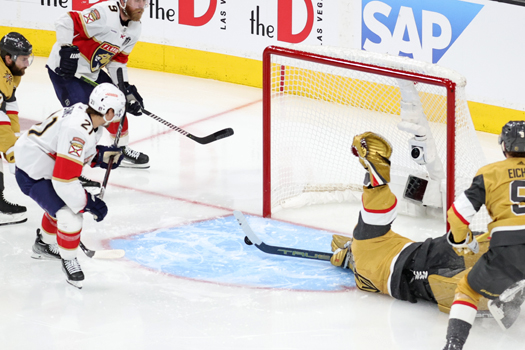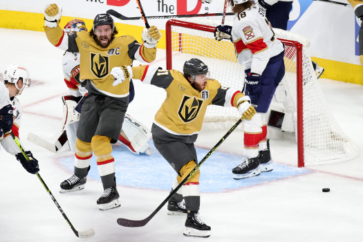 Whitecloud shot from the blue line and the puck found a way to the net for a 3-2 lead to the Golden Knights, en route to a 5-2 win over the Florida Panthers in Game 1 of the Stanley Cup Final.