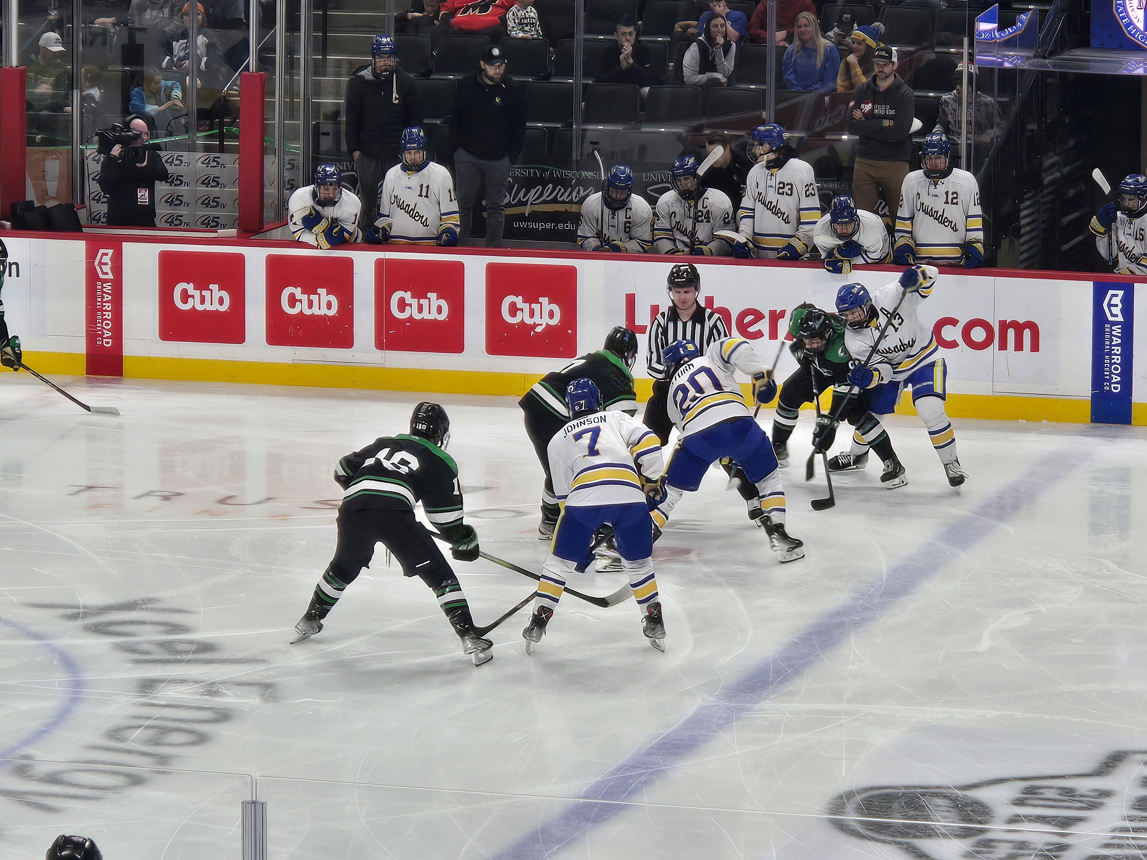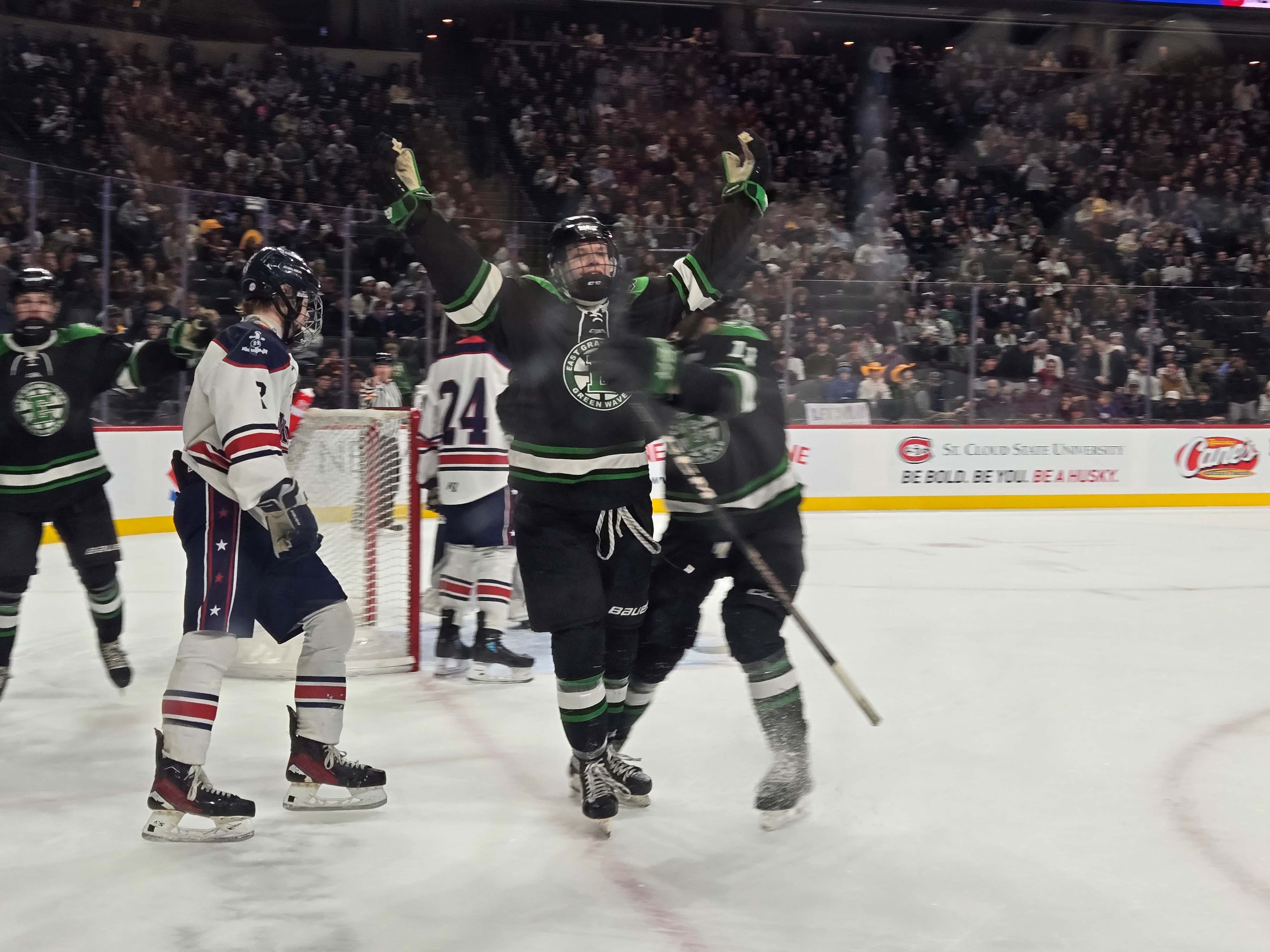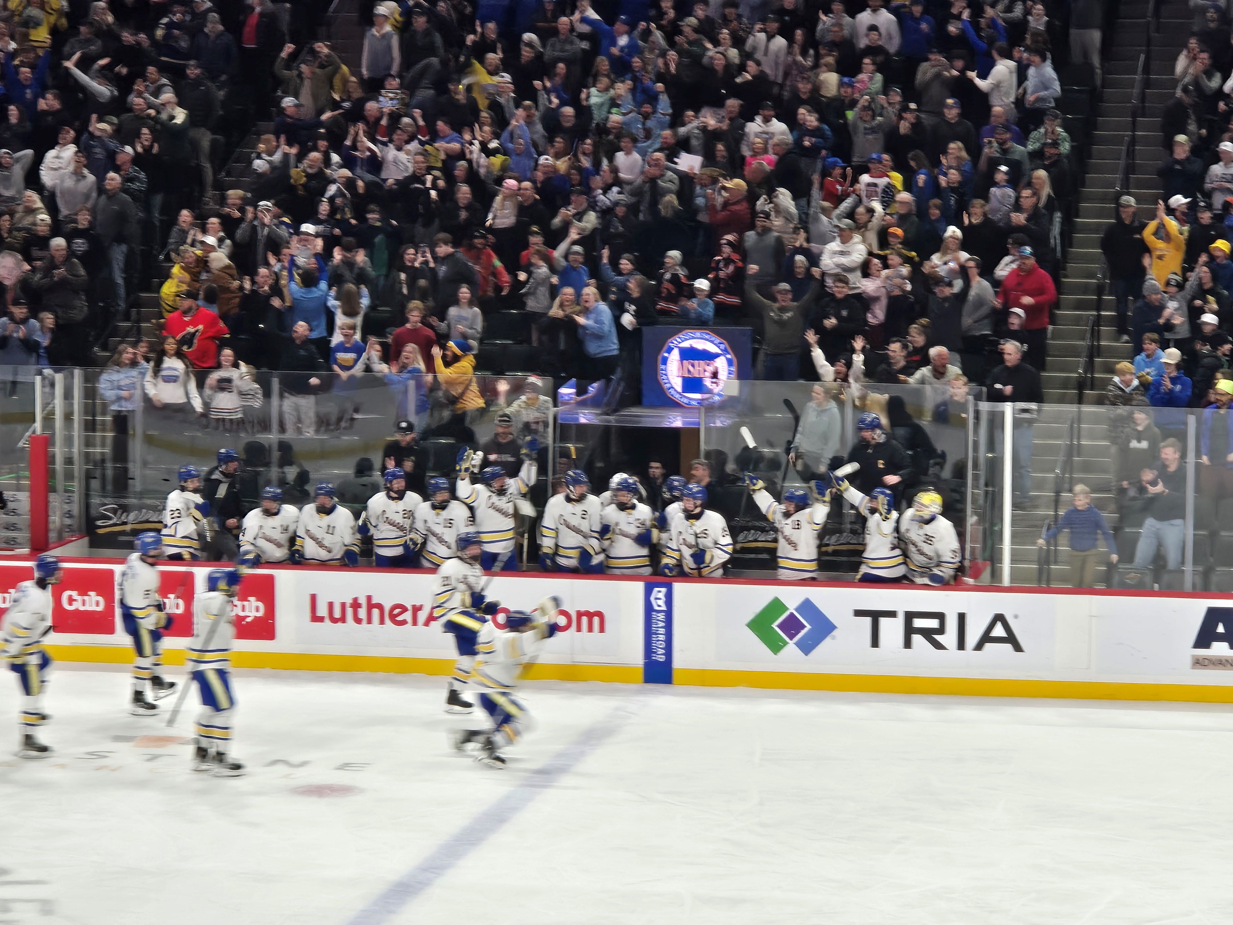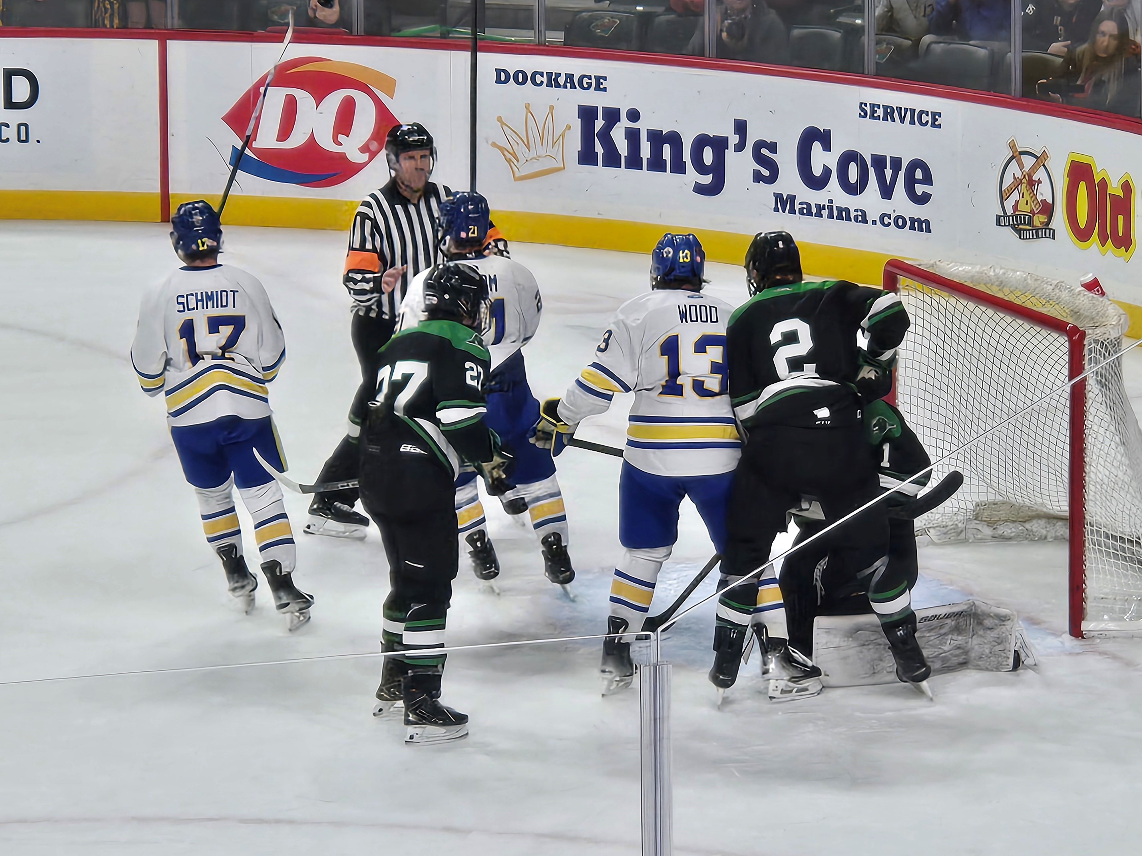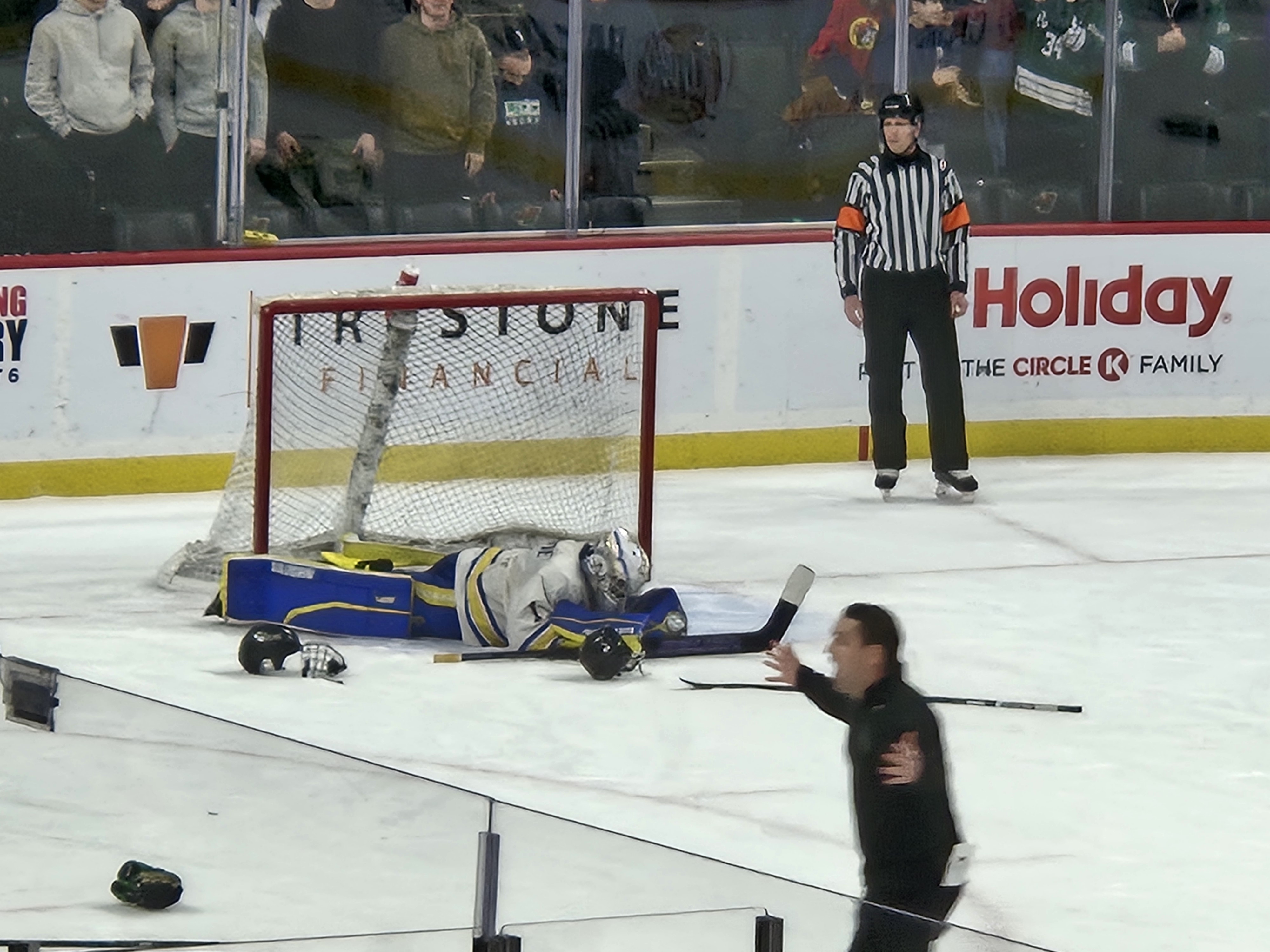 That’s when Freshman sniper Bo Schmidt tied the game with just 47 seconds left. His drive from the left dot eluded Schindele’s pads setting off a frenzy in the arena. Caden Johnson and John Hirschfeld had the helpers.