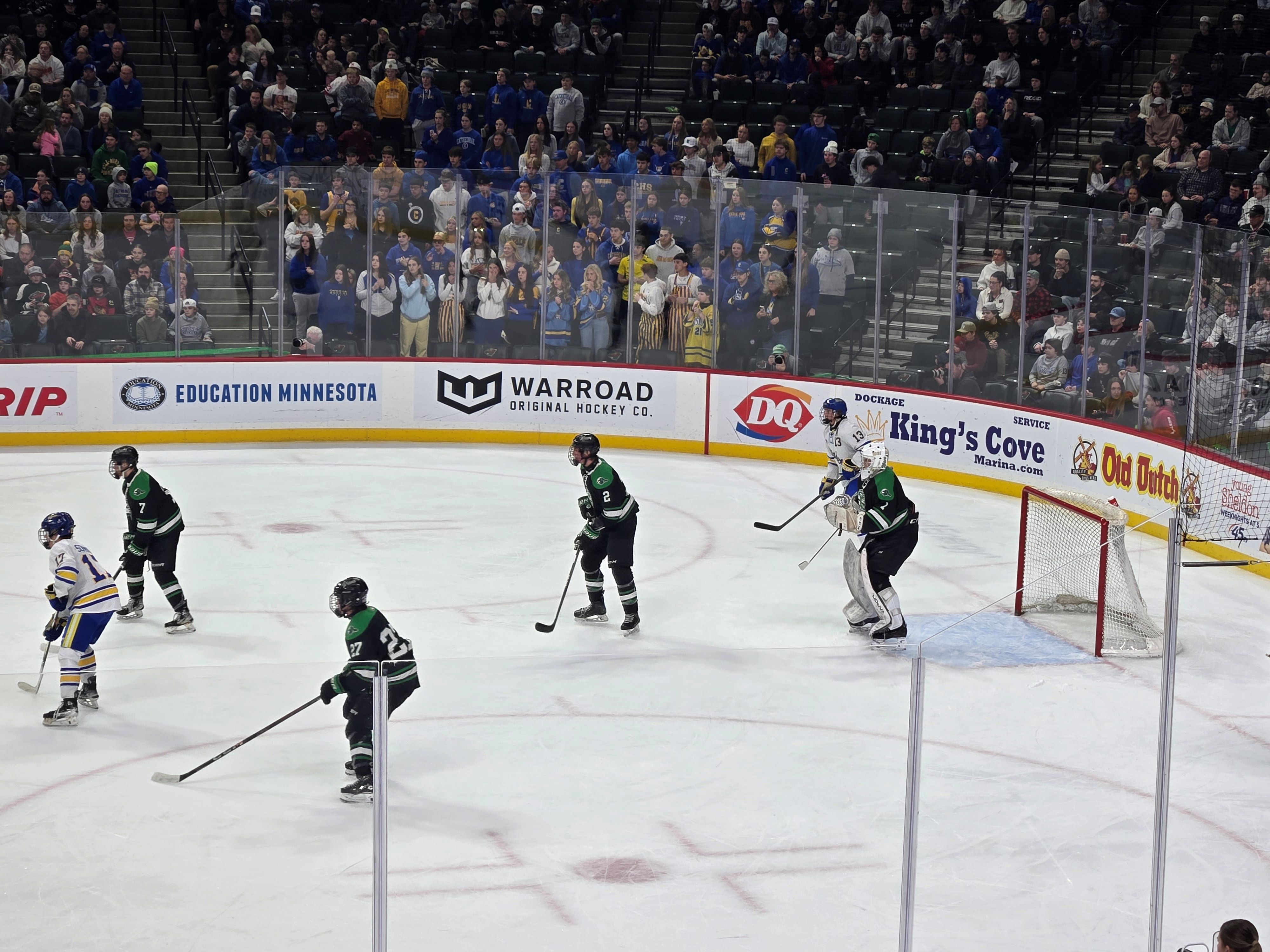 In the extra frame, Jace Van Eps was in the corner to the left of the Crusader goal when he turned and fired the puck on net, catching St. Cloud Cathedral goalie Keaton LeGrande off-guard.
