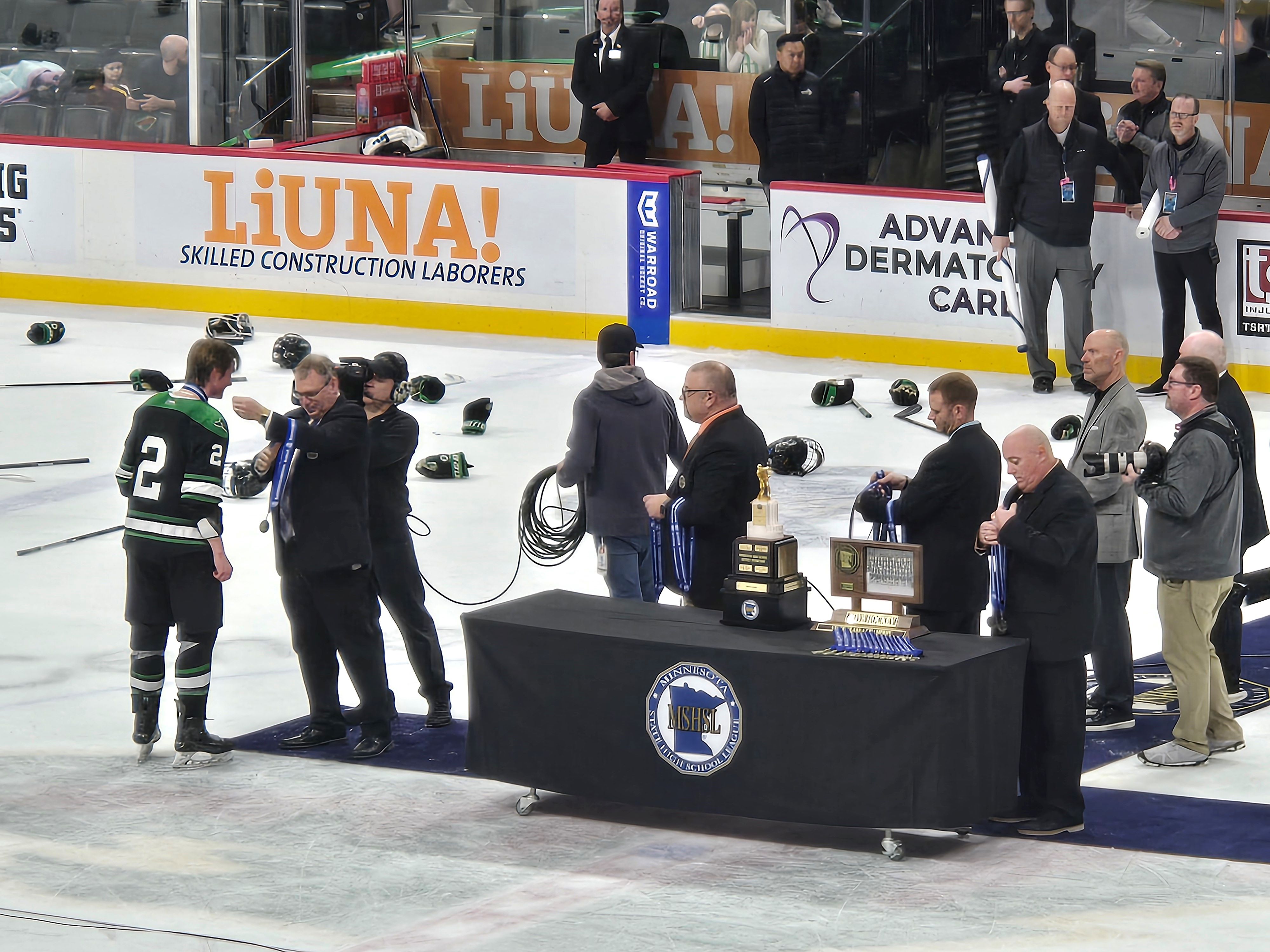 “I think that once the puck dropped in the section playoffs,” Palmiscno said, “all of a sudden we hit a gear, as a group of 20, led by a senior class that was very driven.”