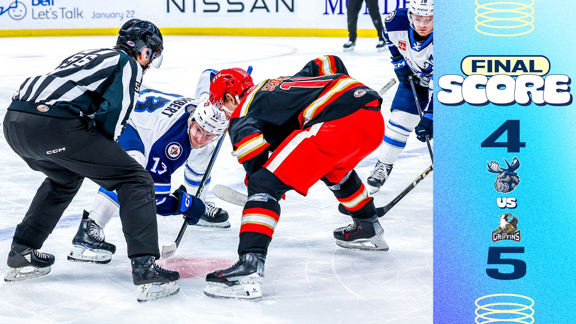 The Manitoba Moose (11-22-1-1) fell 5-4 to the Grand Rapids Griffins (23-12-3-1) on Thursday night. The Moose were coming off a 5-0 loss against Toronto the weekend prior.