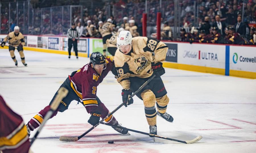 Lagesson extended the Griffins lead to four at 1:14 in the second period. Soderblom sent a rebound off the netminders’ pads and Lagesson found the loose puck for the score. The Wolves got on the board with 1:33 remaining in the period. Bradley Nadeau shot from the left circle past Cossa for the lone goal for Chicago.