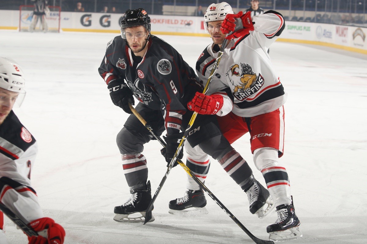 ROSEMONT, Ill. — In a battle for first place in Central Division standings, the Chicago Wolves came back from an early deficit for a 5-2 win over the Grand Rapids Griffins at Allstate Arena on Wednesday night.