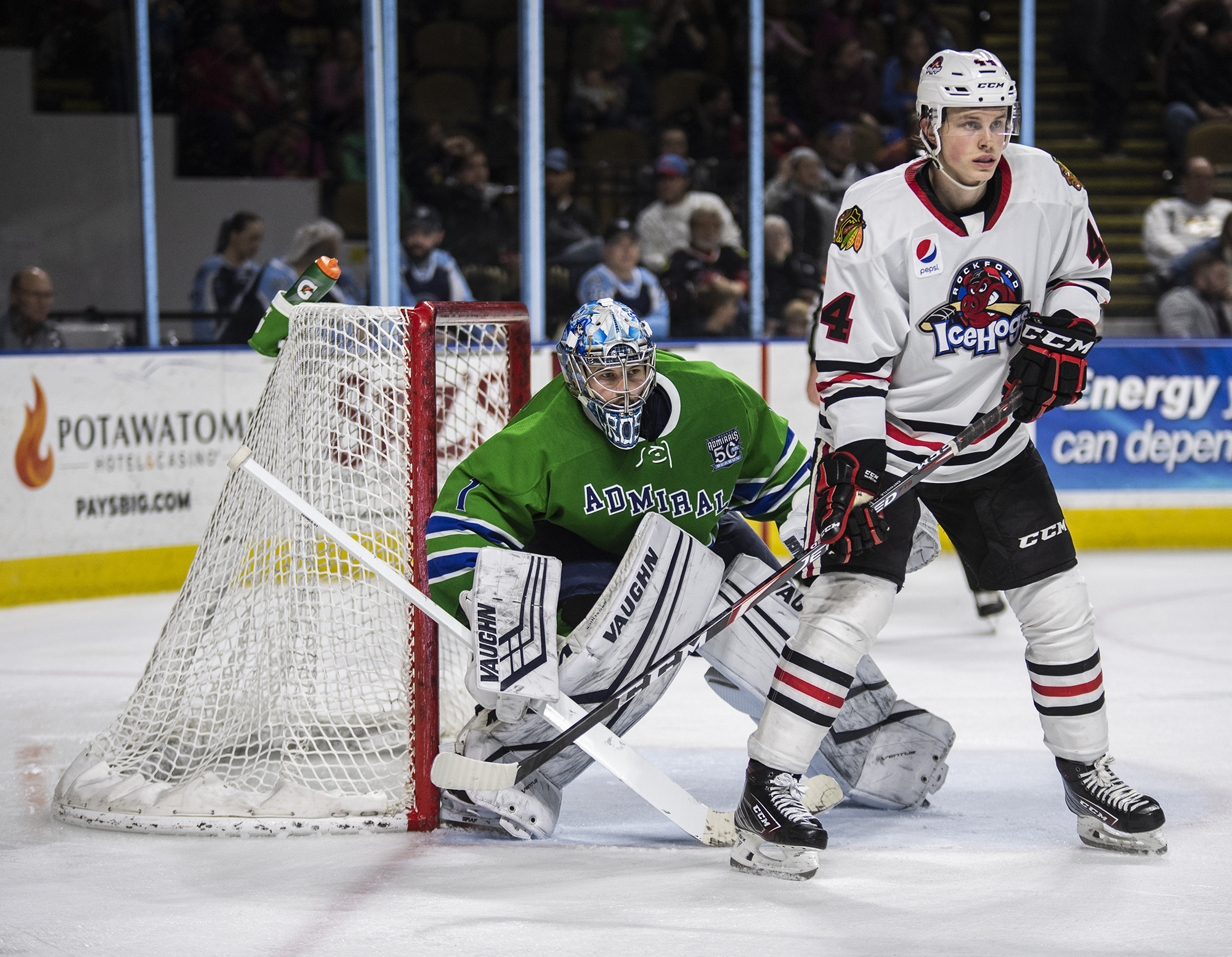 Pitlick got the Admirals all the offense they would need with 5:18 left in the first period with his 12th goal of the season. The play started when Jeremey Davies took shot from between the wheels that was knocked around in front of the net and fell just out of the reach of Rockford goalie Colin Delia. Pitlick was able to get there first and squeezed the puck past Delia for a 1-0 lead.