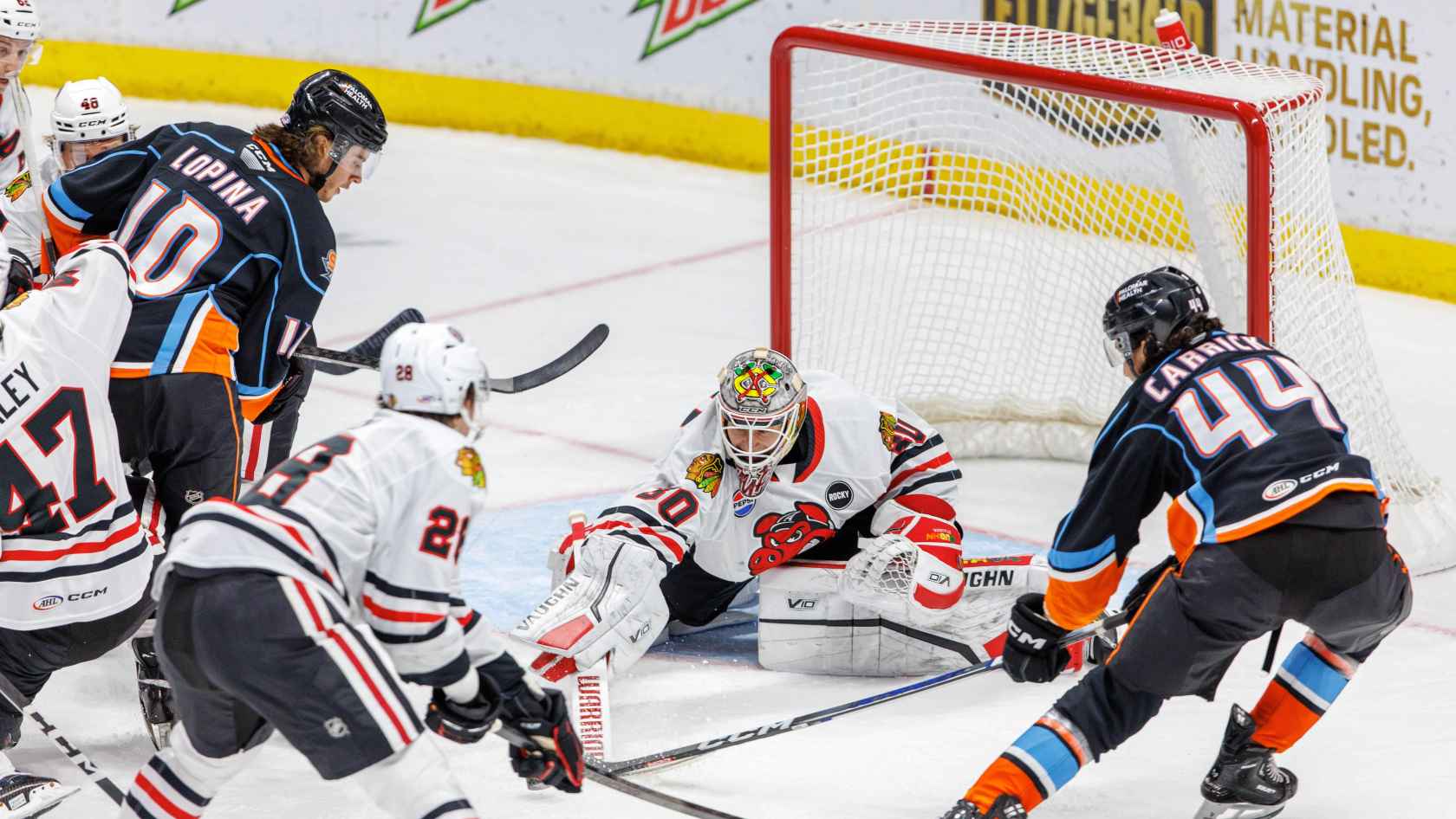 Rockford ended five scoreless periods of hockey with Logan Nijhoff’s goal late in the third (13:57). Bryce Kindopp won the faceoff and sent the puck to Ethan Del Mastro at the point. Del Mastro sent a wrist shot towards the net and Nijhoff was able to tip the puck into the net past the pads of Tomas Suchanek.