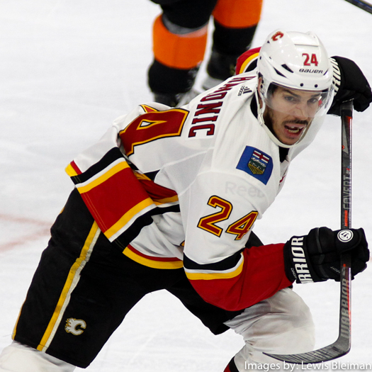 Defenseman Travis Hamonic (#24) of the Calgary Flames