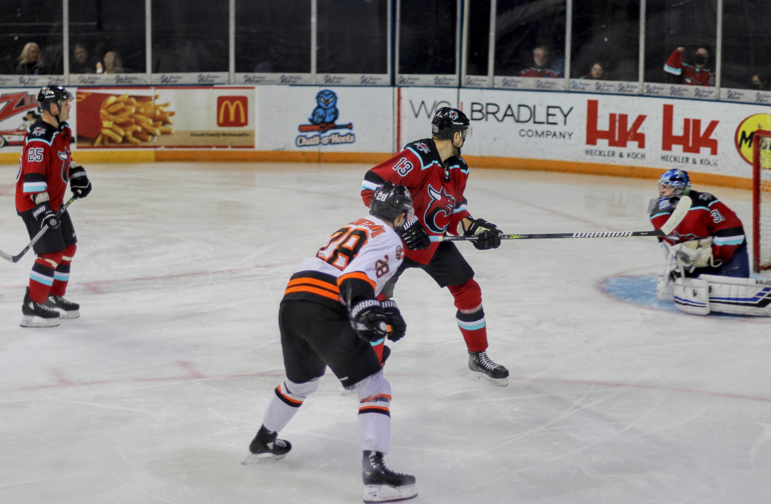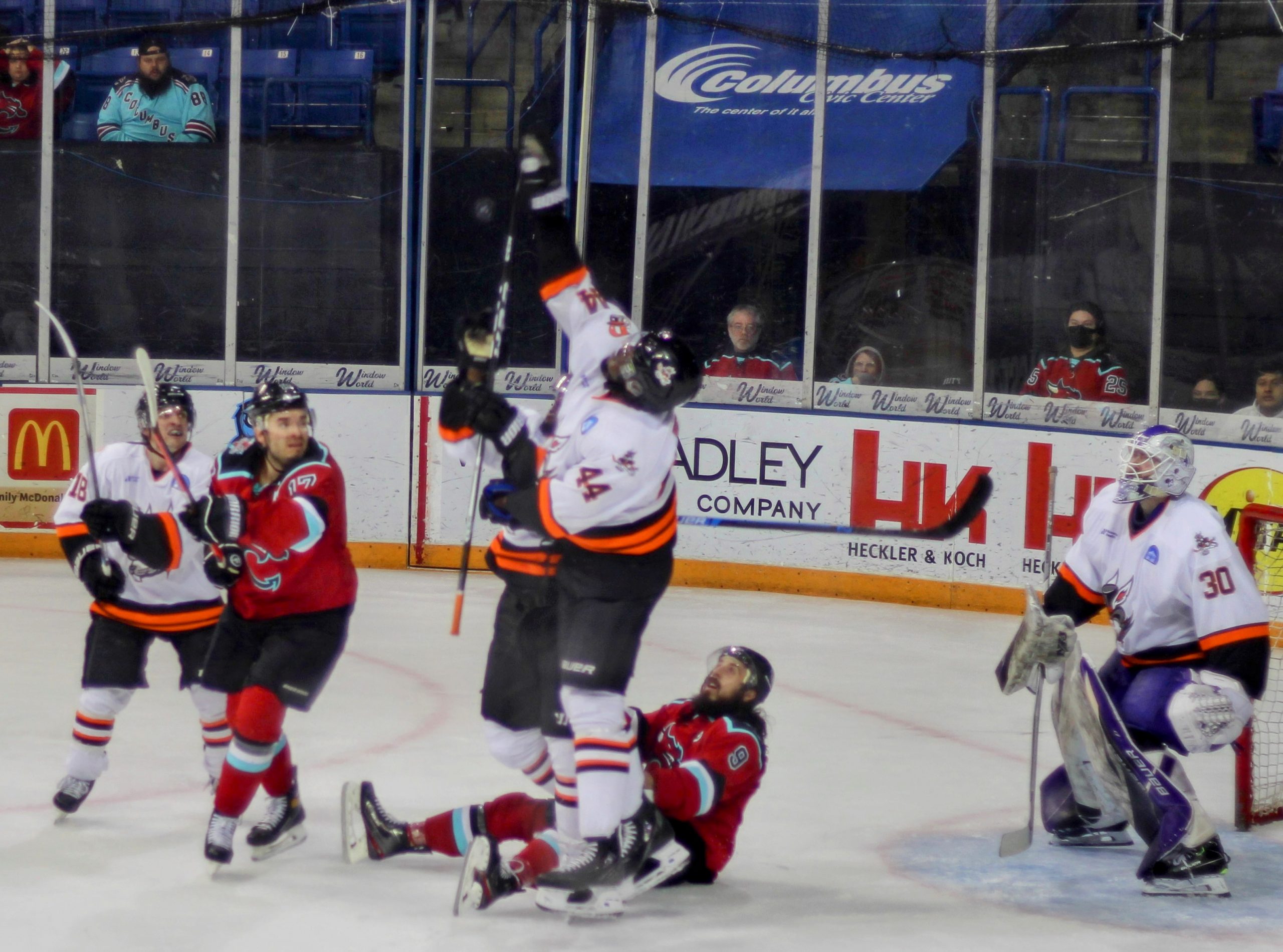 COLUMBUS, GA – A third-period comeback by the Danbury Hat Tricks (28-13-3, 82 pts) lifted them over the Columbus River Dragons (22-12-5, 71 pts) 3-2 in a shootout on Friday night.