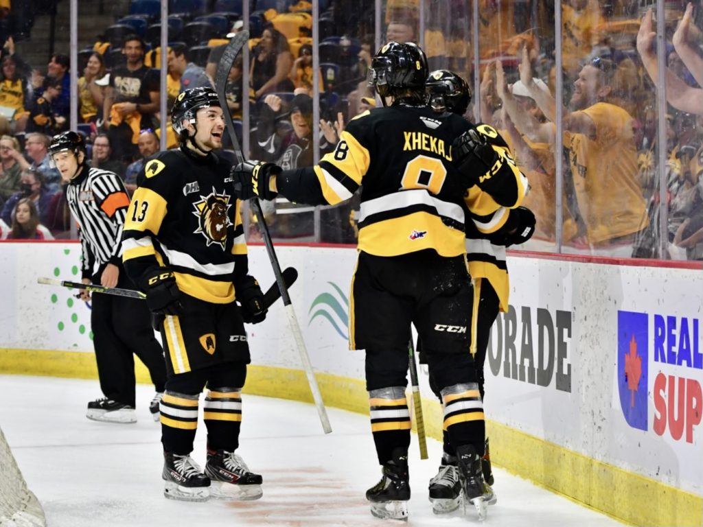 Starting off the second frame with the man-advantage the Bulldogs, saw Xavier Media return to the Spitfires’ goal but were pressed by an aggressive Windsor penalty-kill forcing Marco Costantini to come up big with three game stopping saves. At the halfway point on the power-play, Morrison, off a Xhekaj pass, set partner in crime Hayes loose in the bottom of the left circle where Hayes hinged and fired 5-hole to beat Medina sending the Bulldogs 3 goals up to make it 4-1 on his second of the game and 11th of the playoffs. Windsor answered back to cut the lead in half at 16:26 through Matthew Maggio’s 6th of the playoffs on the power-play pulling momentum back to the Western Champions. With time ticking down on the middle frame, Artem Grushnikov sent Avery Hayes ahead on a zone exit, the winger cut along the blueline dropping the puck through his feet to Arber Xhekaj who carried down the right-wing side and tossed a backhand bar-down over Medina’s shoulder to give the Bulldogs a 5-2 advantage at 19:41.