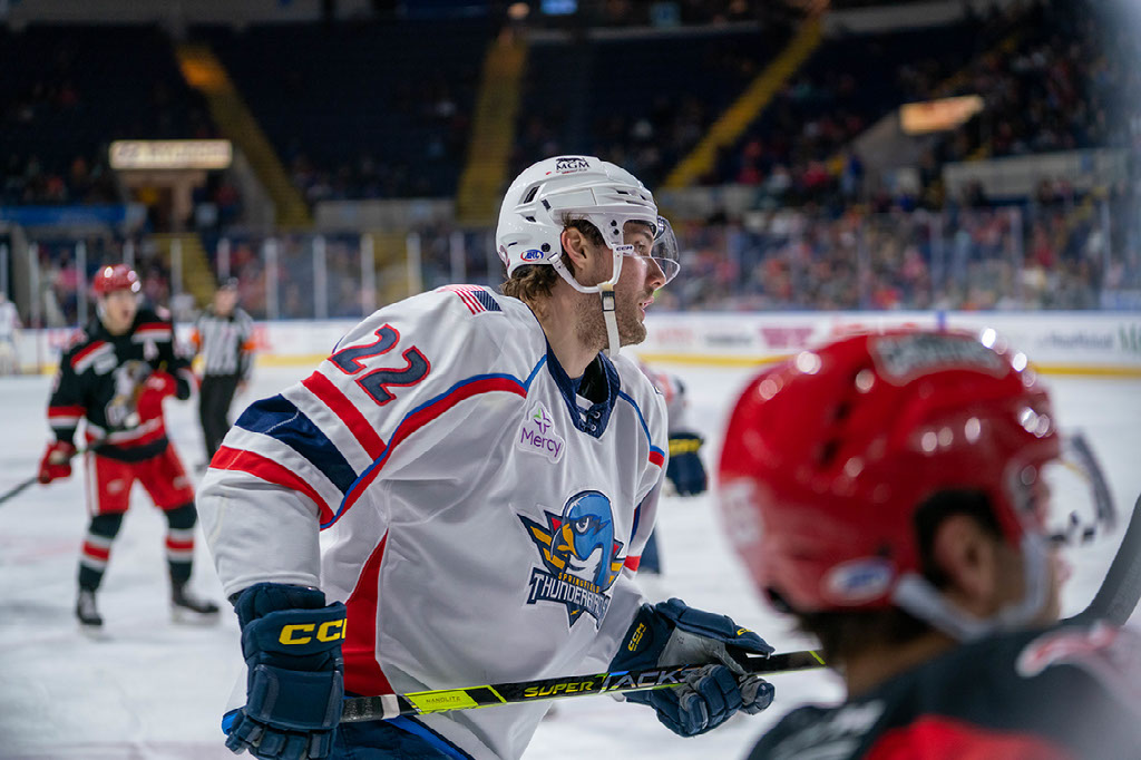 Hofer’s second period was slightly calmer, but he maintained his poise to turn away 10 pucks in the middle stanza, including a point-blank chance by Pontus Andreasson, who had entered with 14 points over his last 13 games. Springfield’s penalty kill was put to its first test of the night late in the frame, and Hofer made the three saves needed to allow the T-Birds to escape unharmed with a 1-0 lead into the third.