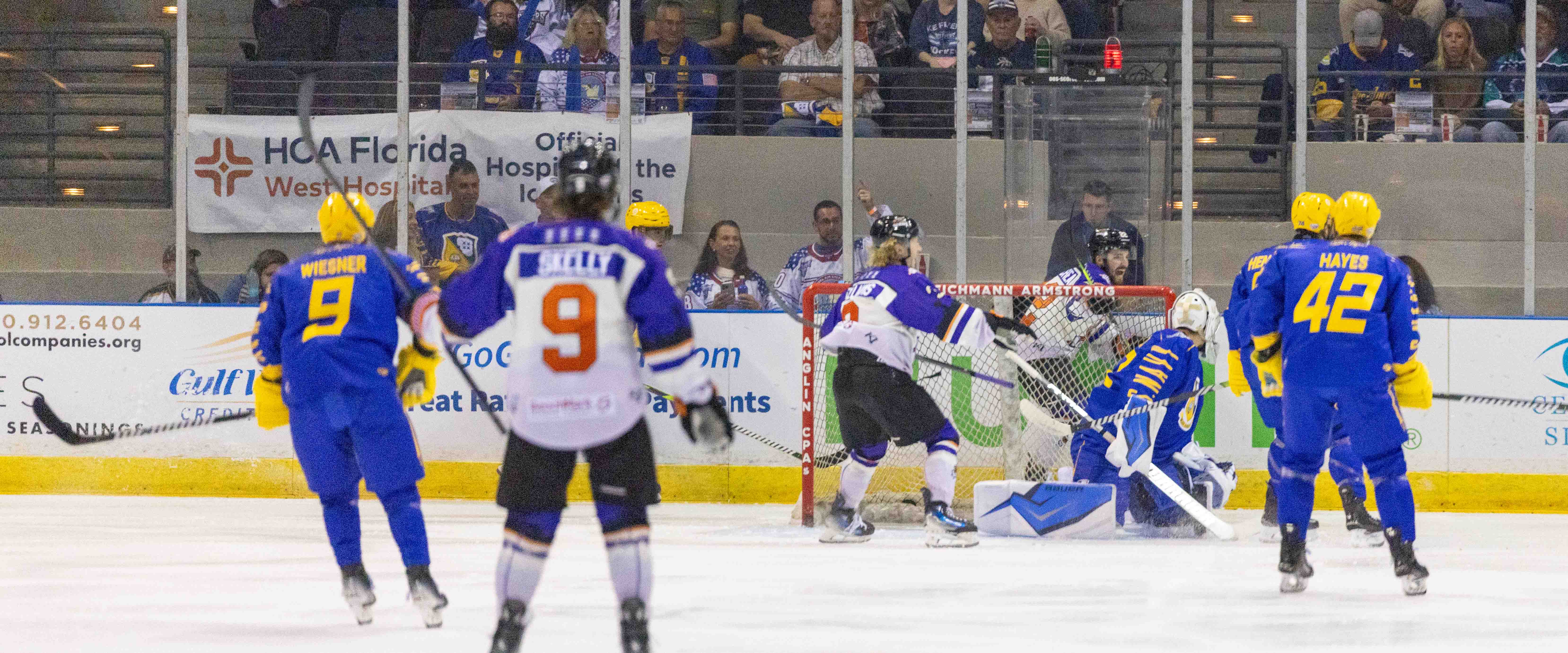 The spirited crowd of 6,235 at the Pensacola Bay Center kept hopes alive as the second period began. Ivan Bondarenko netted his first goal of the new season just three minutes in. Although Knoxville answered later to maintain their three-goal lead, Greg Smith managed to cut the Ice Bears’ advantage in half with 4:27 left on the clock, closing out the scoring for the second period.