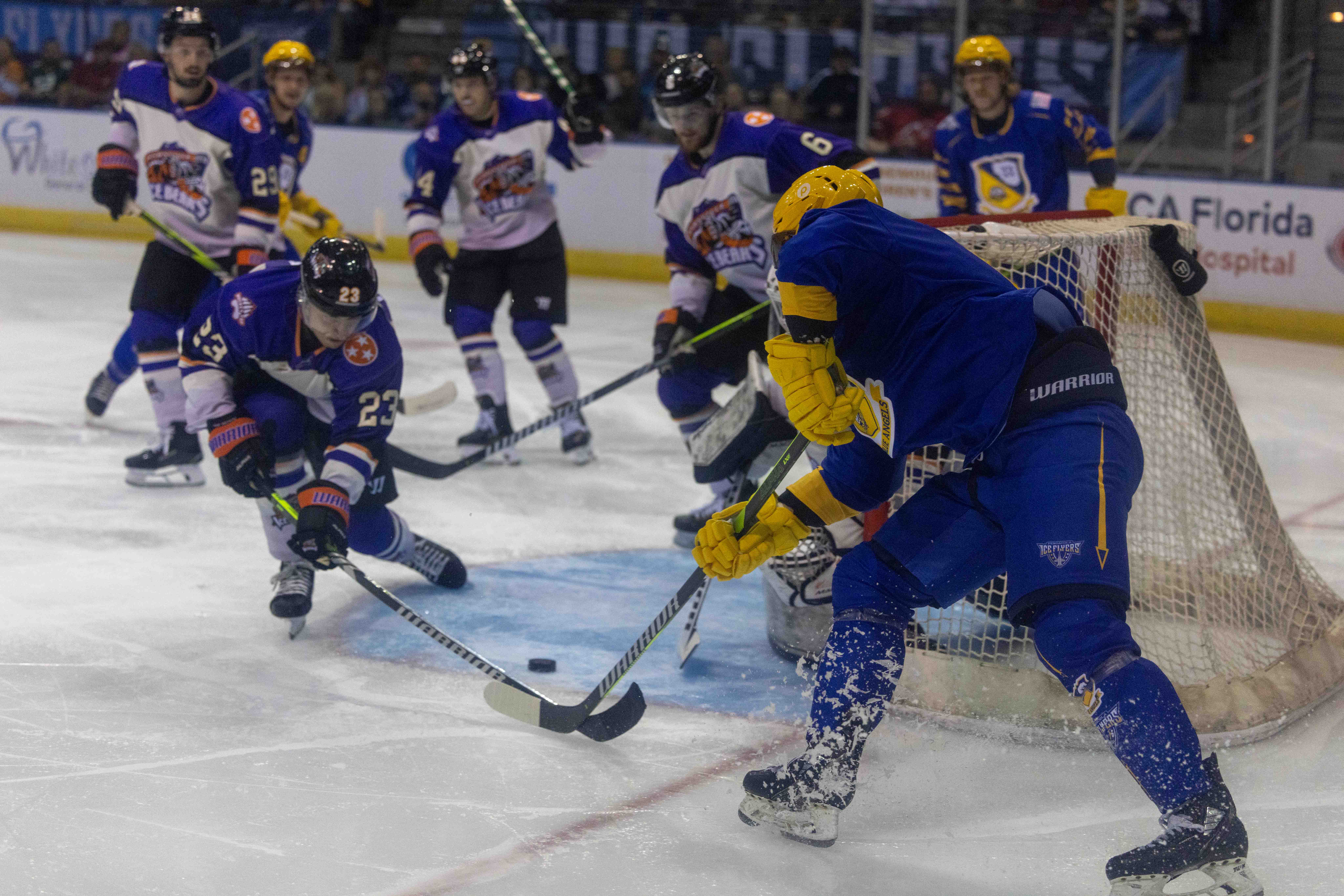PENSACOLA, FLA. – In a hard-fought battle that capped off the Blue Angels Night festivities, the Pensacola Ice Flyers fell short against the Knoxville Ice Bears, losing 5-3 on Saturday night. The defeat evened out the weekend series, following the Ice Flyers’ impressive 6-4 win on Friday night.