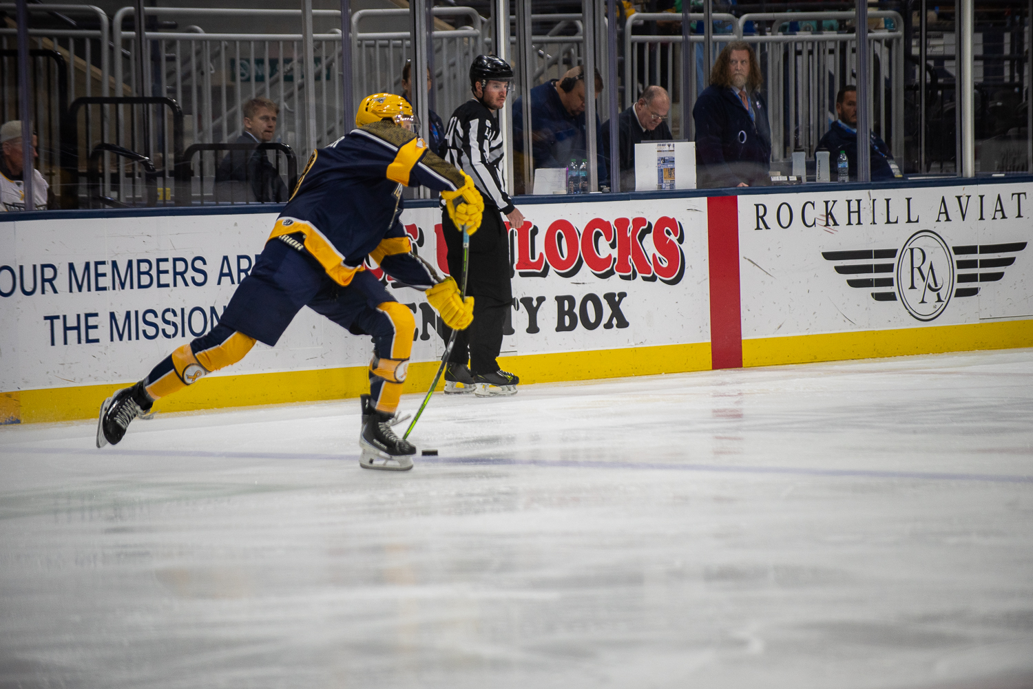 The second period was highly contested with some scrums and ended scoreless. A boarding call on Roanoke’s Khristian Acosta put the Ice Flyers on the powerplay that carried over into the third period.