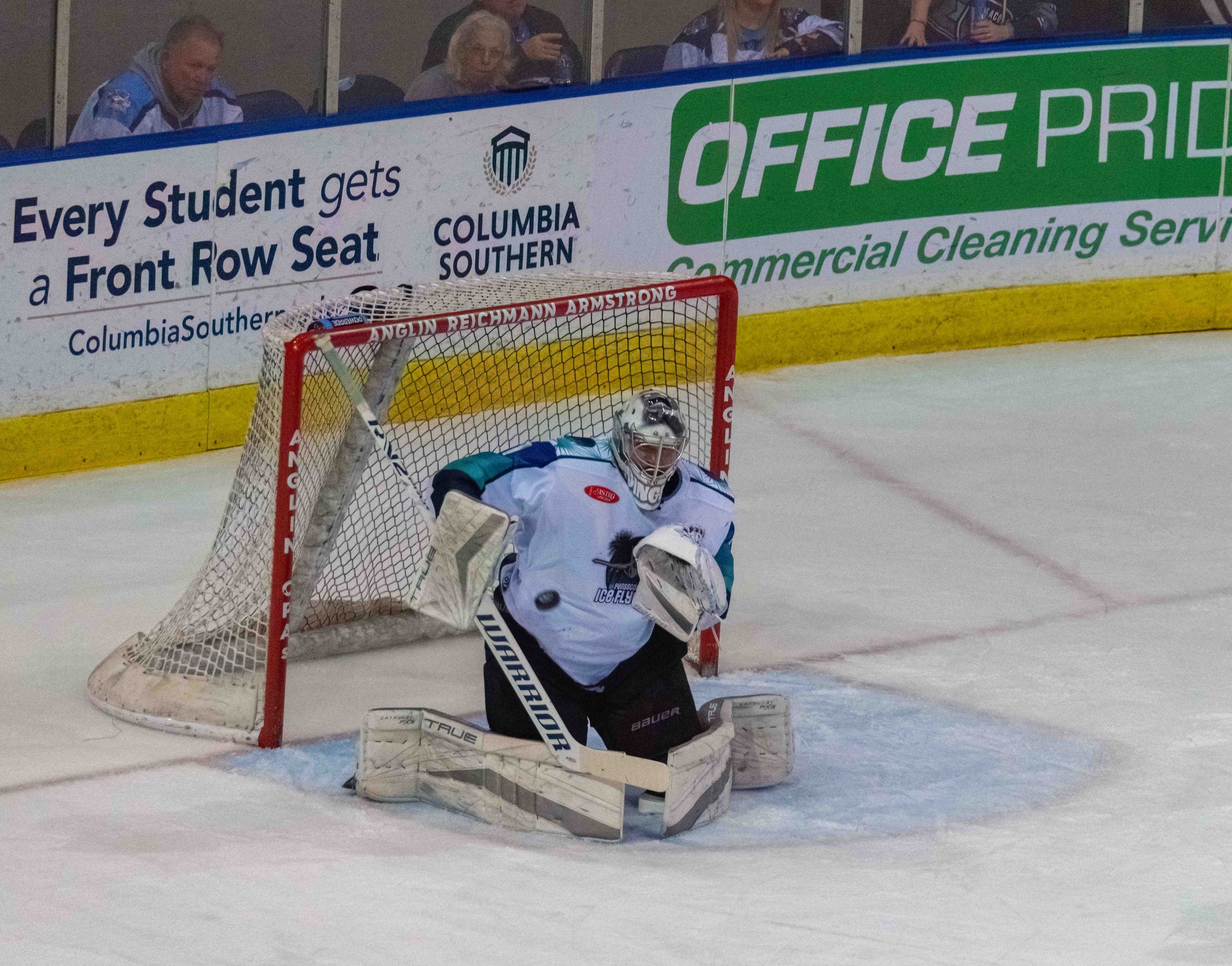 Ice Flyers’ goaltender Stephen Mundinger was a standout for the team again, earning No. 3 star in post-game recognition after stopping 26 shots. This includes a flurry of big saves in the second period with the game 1-0.