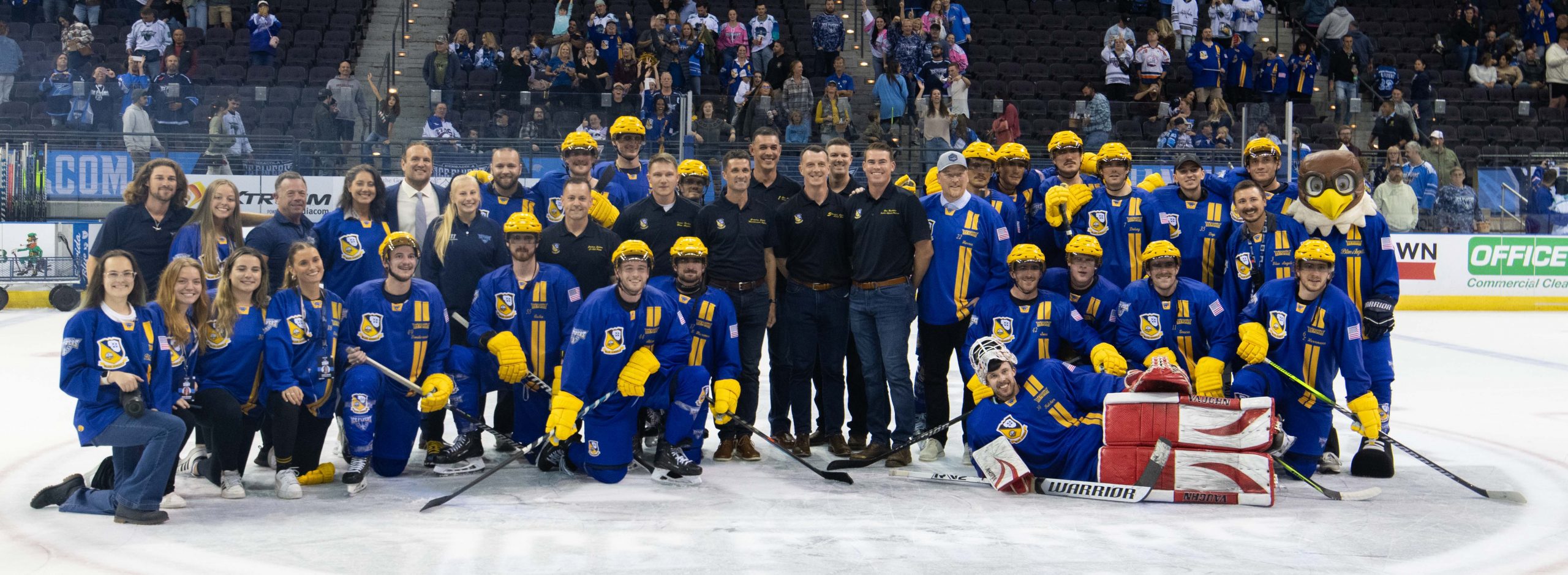 When the game ended, the Ice Flyers players were joined in a center-ice salute with the Blue Angels and support staff and a photo was taken that will be a keepsake memory.