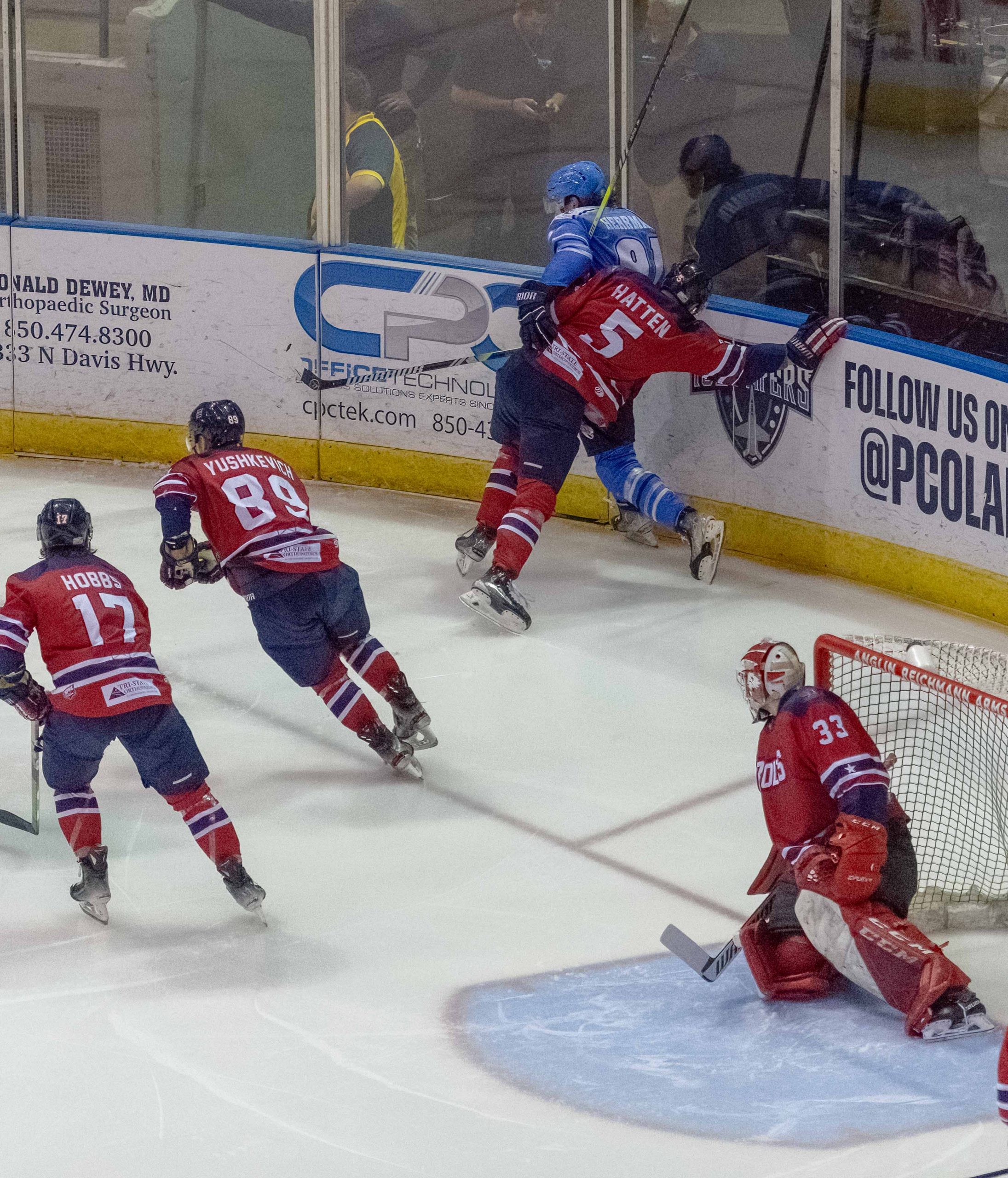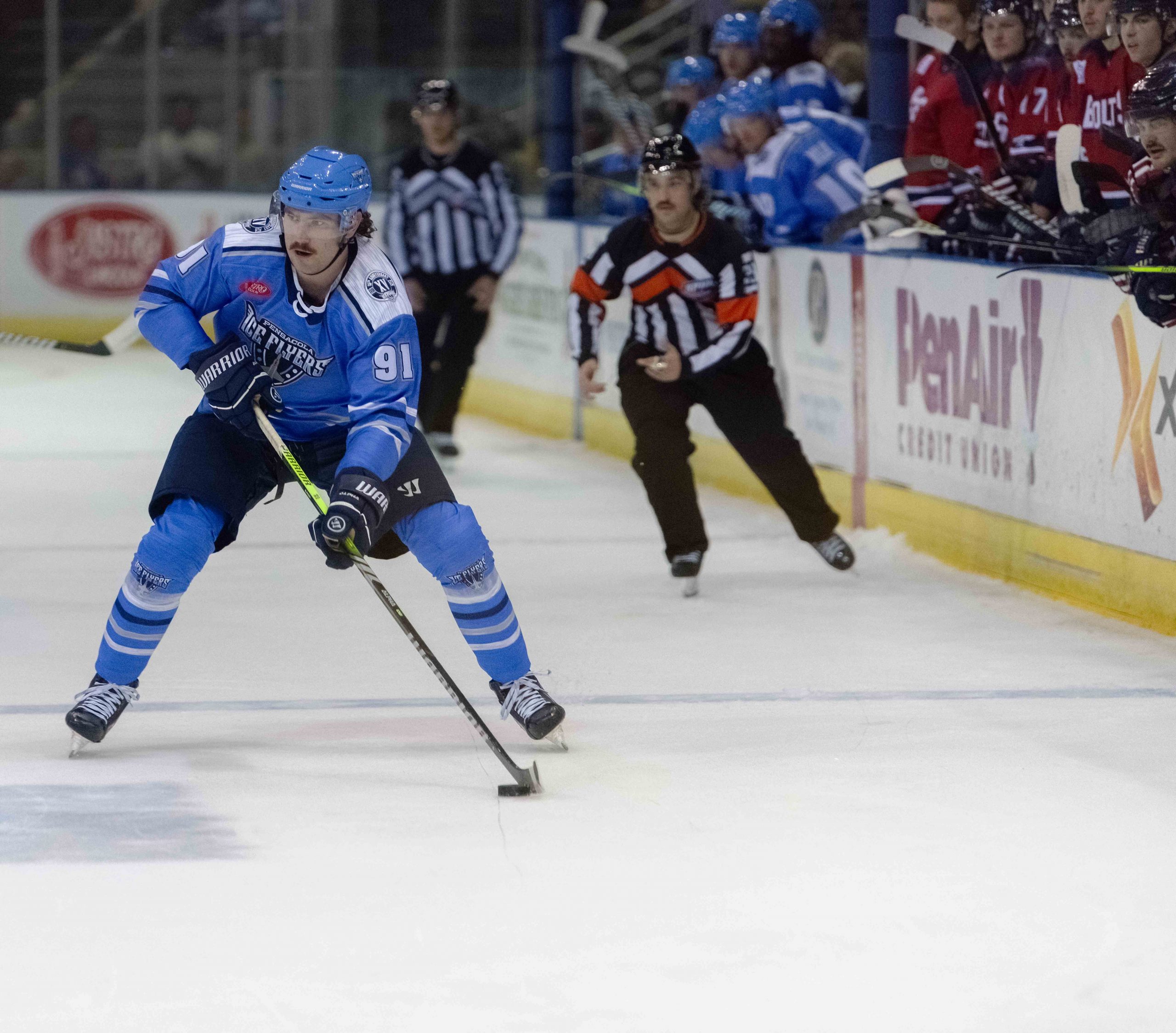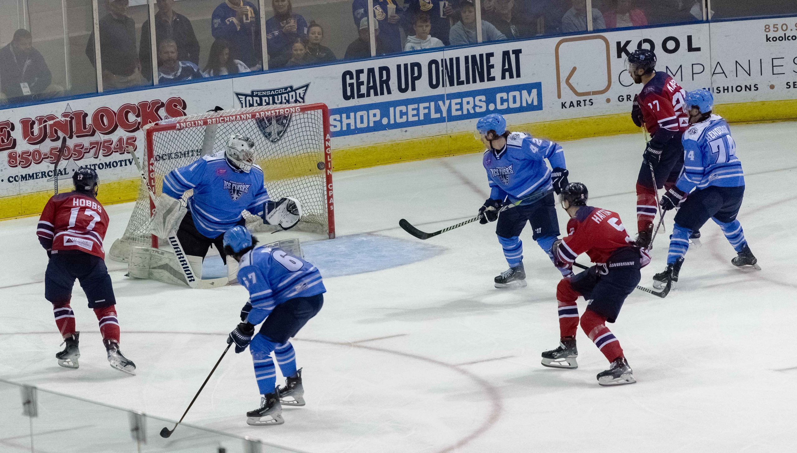 With a late high-sticking penalty to Dale Deon, the Ice Flyers had to fend off a 6-on-4 situation when Evansville pulled goaltender Cole Ceci for an extra attacker on the power play.
