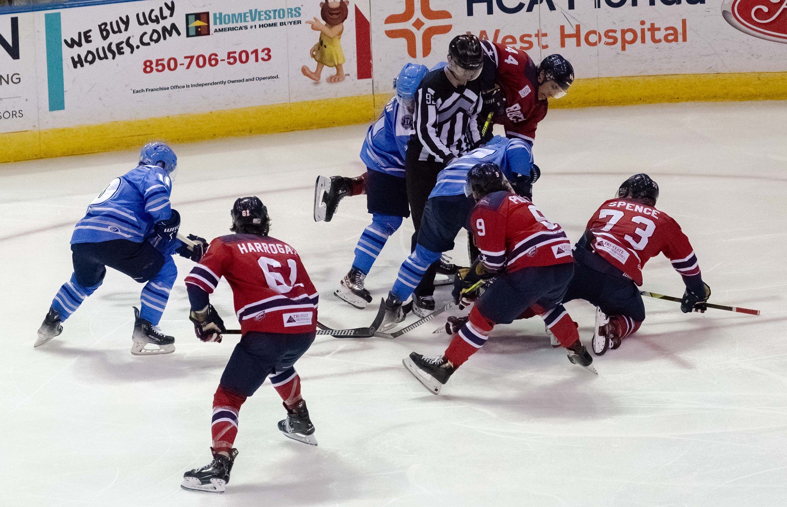 — Ice Flyers owner Greg Harris produced a special moment of the season when he presented Rally Foundation Gulf Coast with a $60,000 donation toward the non-profit organization’s continuing efforts to aid area children battling cancer and treatments. Harris was joined on ice during a second-period timeout with many children who are being aided in the community and a loud ovation ensued from the crowd. Both teams’ players responded, too, by tapping sticks on the boards.