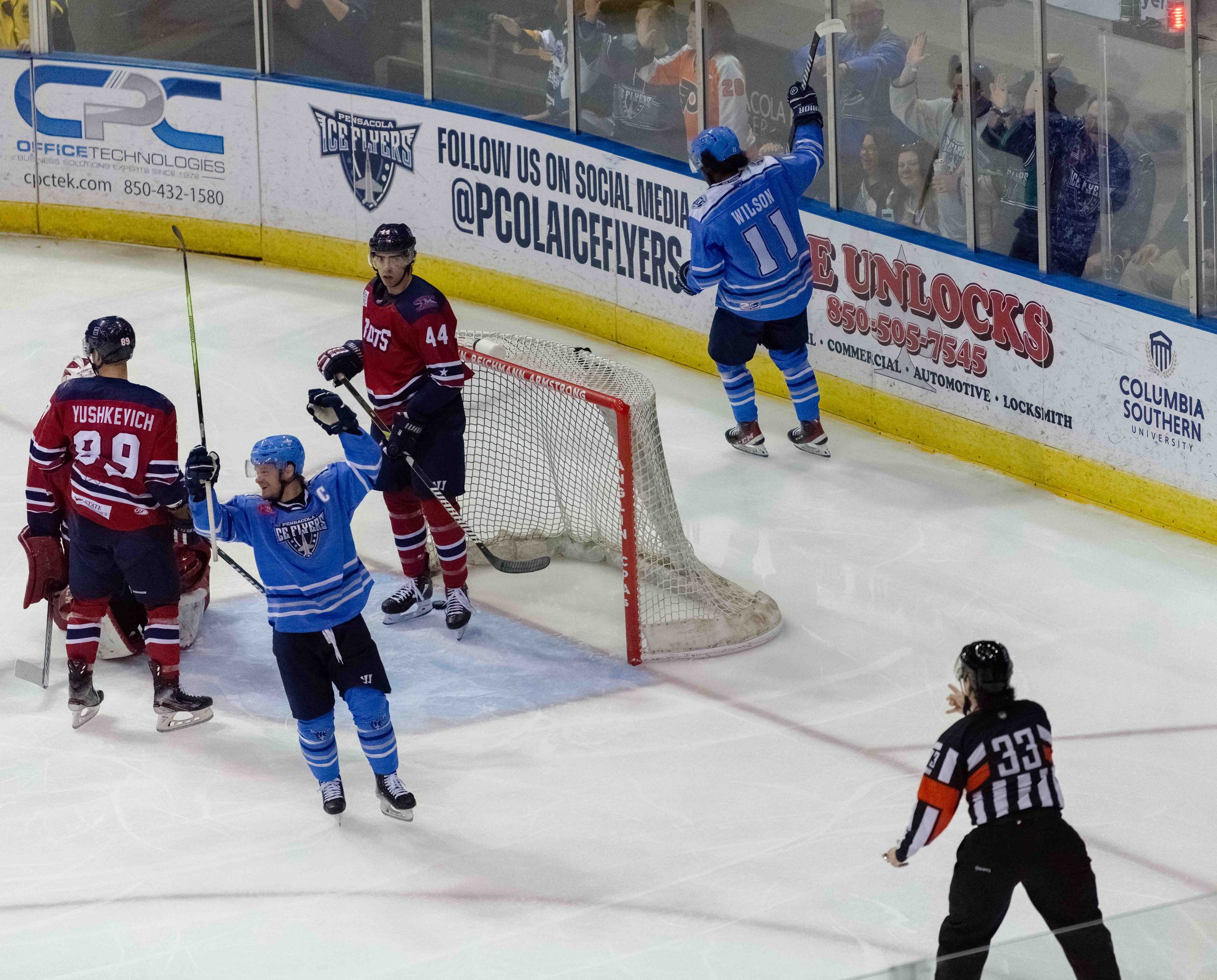 Ice Flyers captain Garrett Milan was credited for the game’s first goal, 3:44 into the period when a shot by Mitch Atkins deflected off him and into the net. Houston Wilson also received an assist on the play.