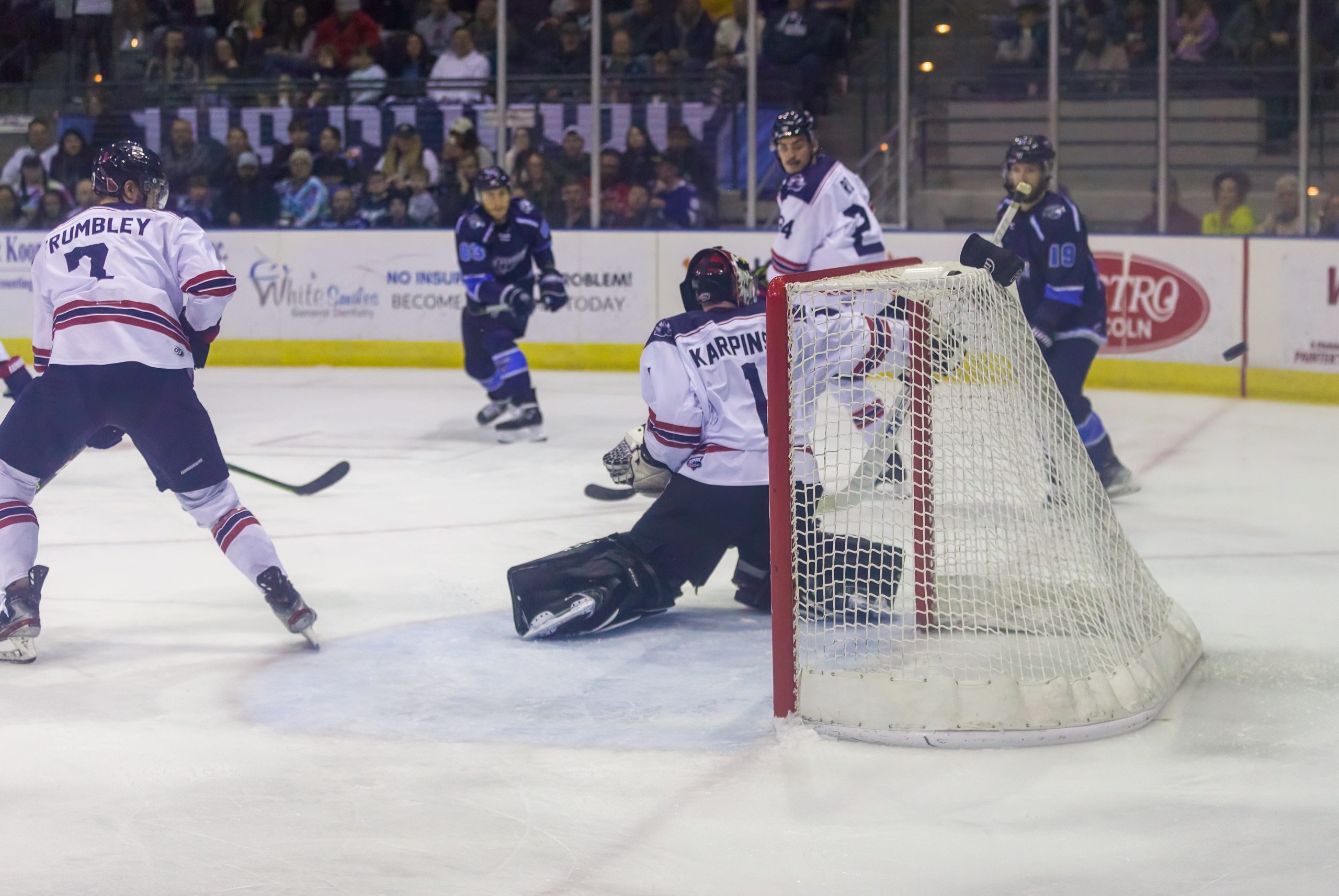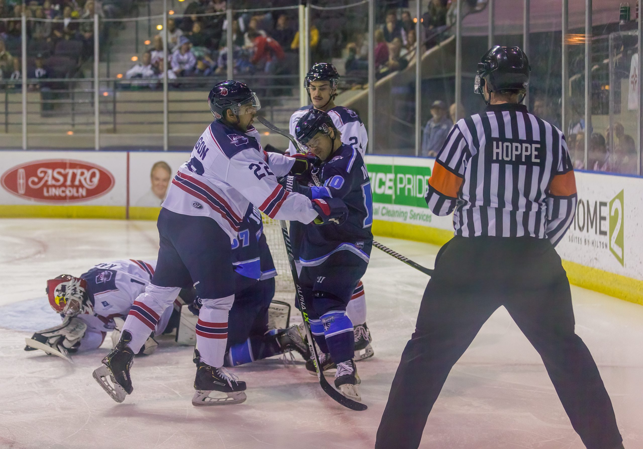 In the second period, Bondarenko scored on a power play just 61 seconds into play on a one-timer after a feed from Atkins. Macon got a goal just 41 seconds later, but Milan answered off a faceoff with an even strength goal 41 seconds later to complete the flurry.