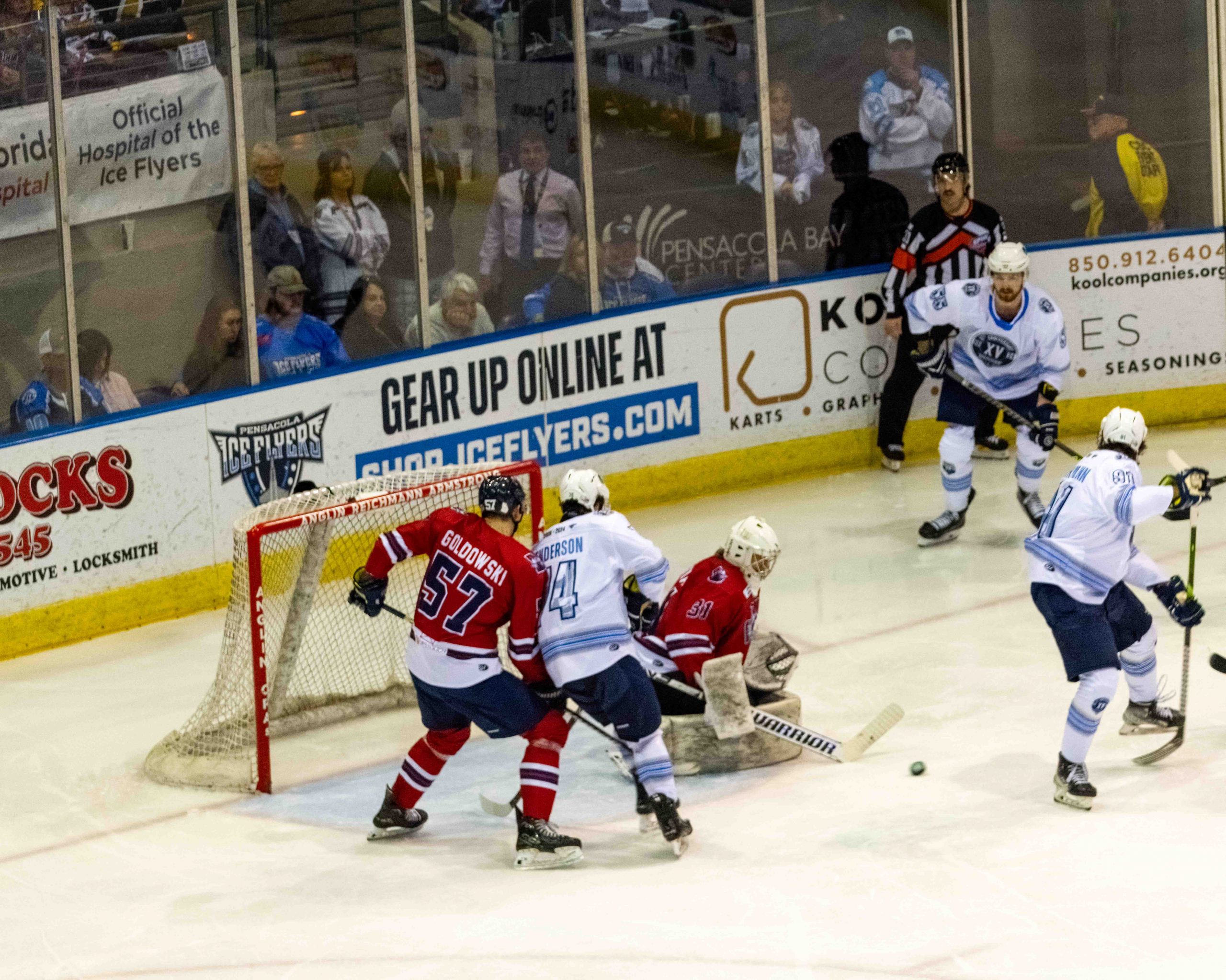 The Ice Flyers will now be on the road next weekend at Huntsville, while Pensacola celebrates its Mardi Gras weekend of parades. They finished Saturday, however, with their own good times rolling.