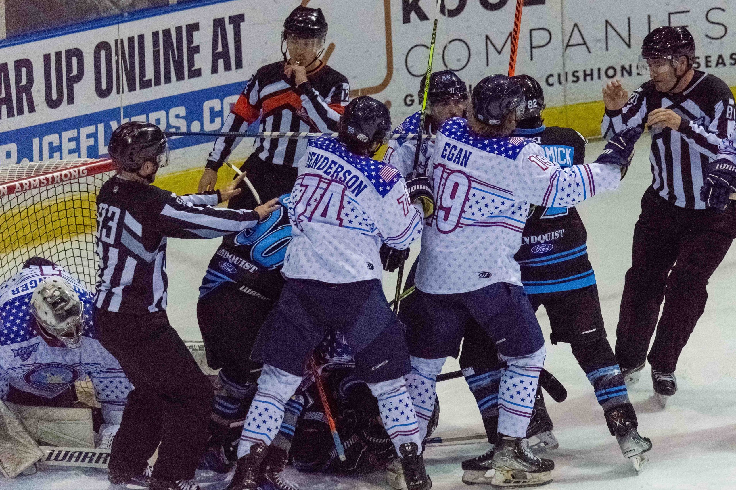 Egan then rifled home a power goal with 5:57 remaining with a laser shot from between the faceoff circles. From that point the Ice Flyers got some other changes, including a couple opportunities with Mundinger pulled for the extra attacker, but Quad City defense held up.