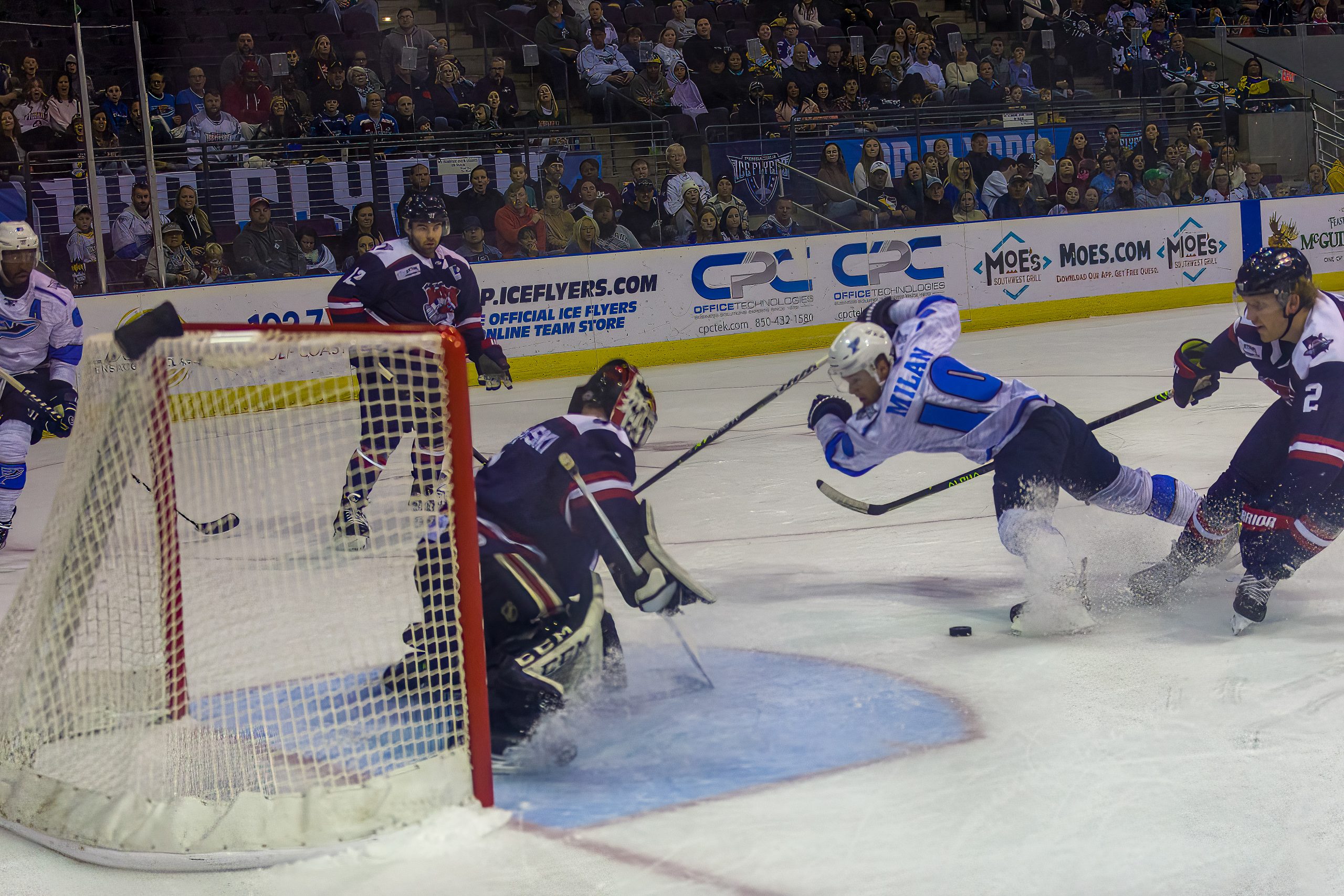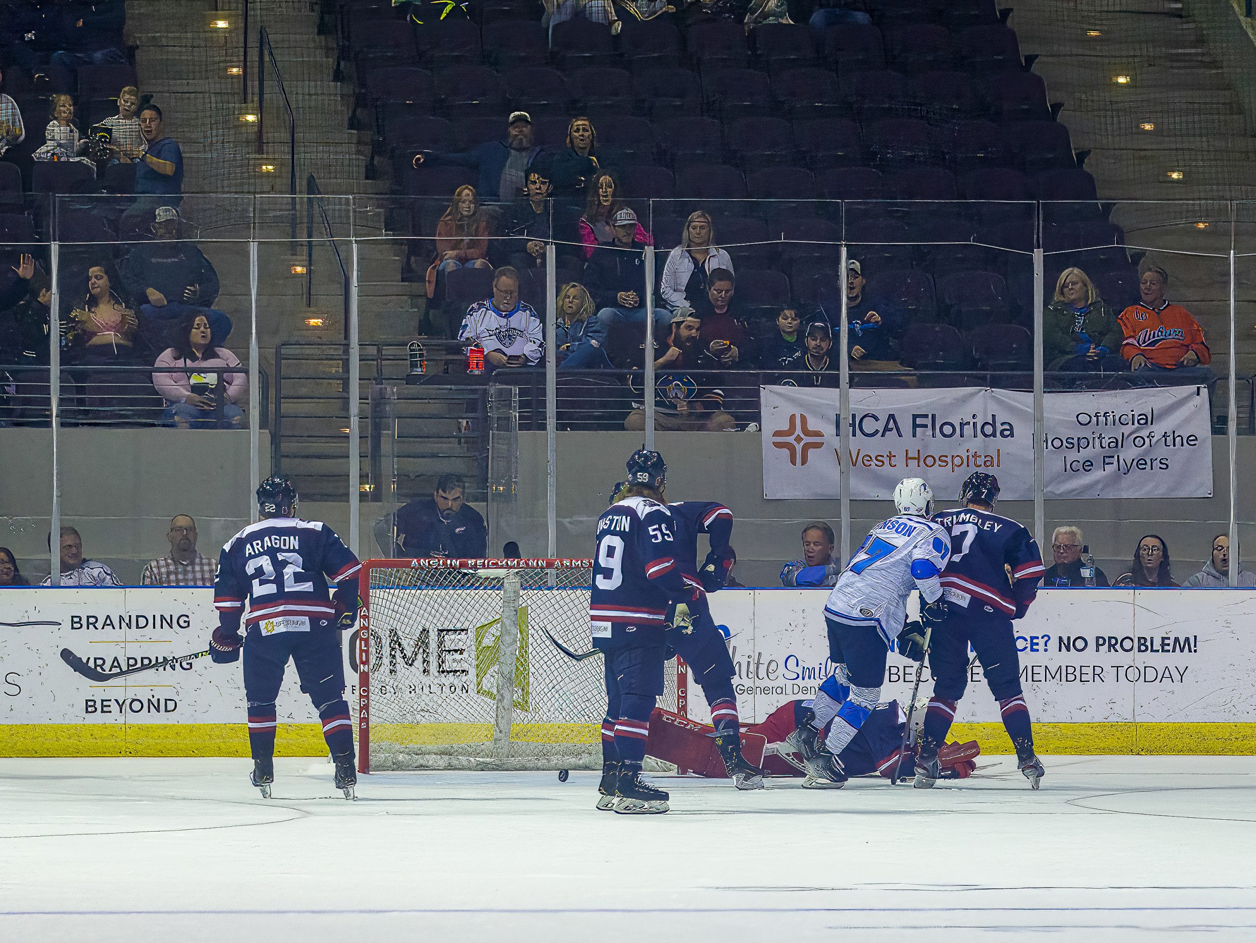 The Ice Flyers began the game in overdrive. They had 10 first-period shots on goal. And five pucks in the net. It kept the crowd of 2,473 busy with goal dances – something that didn’t happen Saturday in the 3-0 shutout loss to Birmingham.
