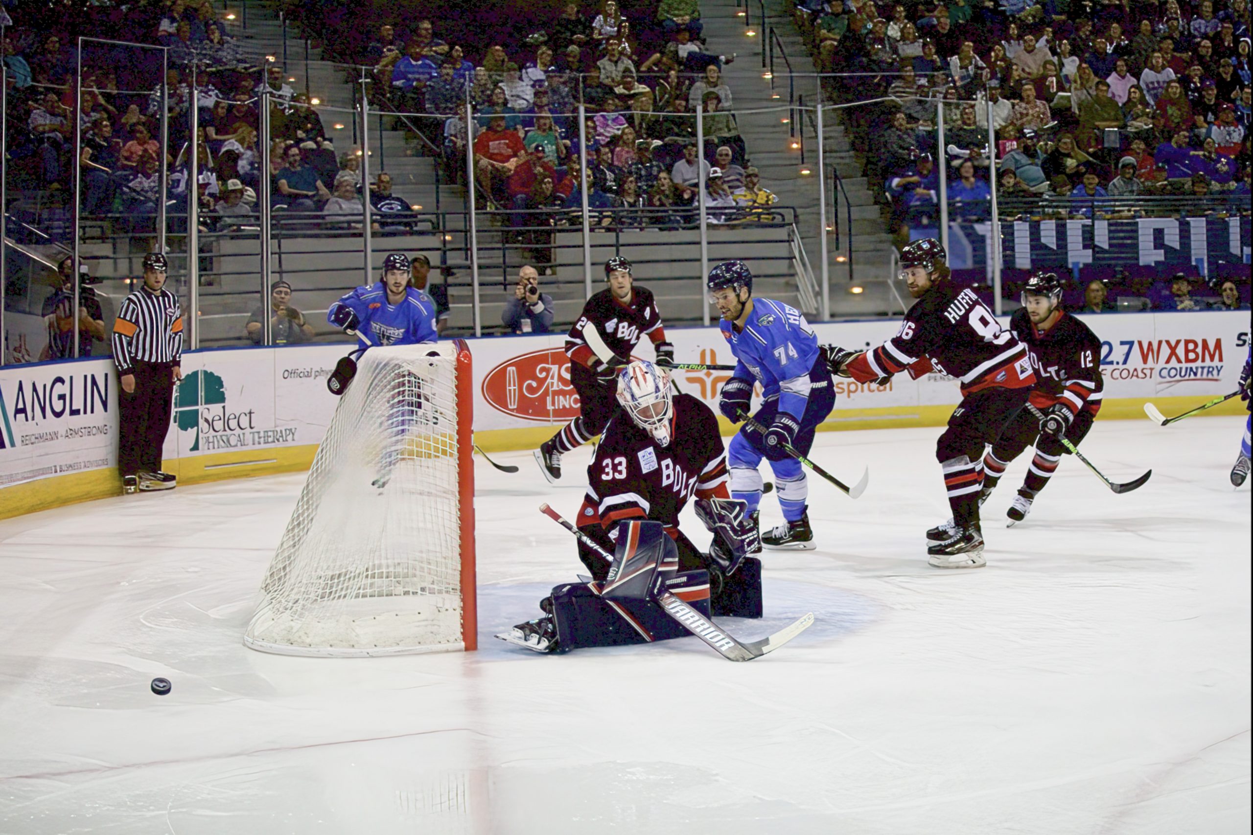Aside from the loss, however, the first “Dino Race Night,” featuring fans chasing across the ice in a variety of inflatable, dinosaur costumes, became a big success. It attracted a crowd of 4,170 at the Bay Center – the 15th crowd of 4,000 or more fans in 26 home games so far this season.