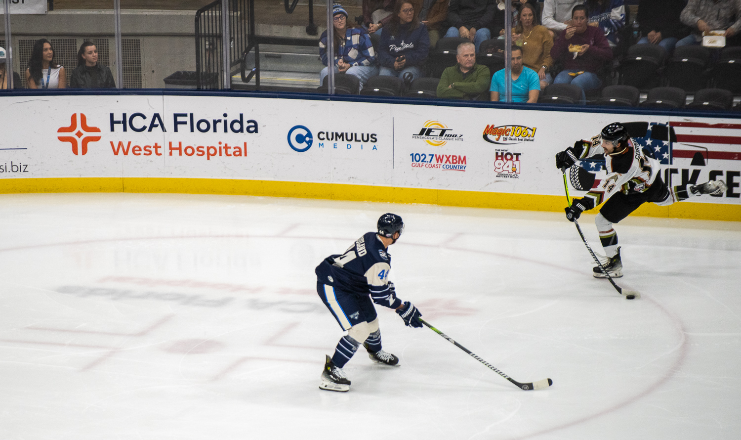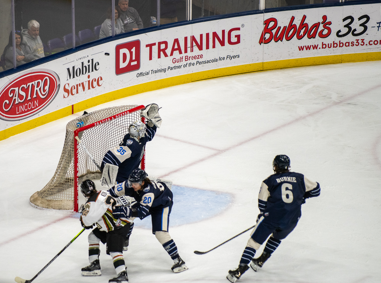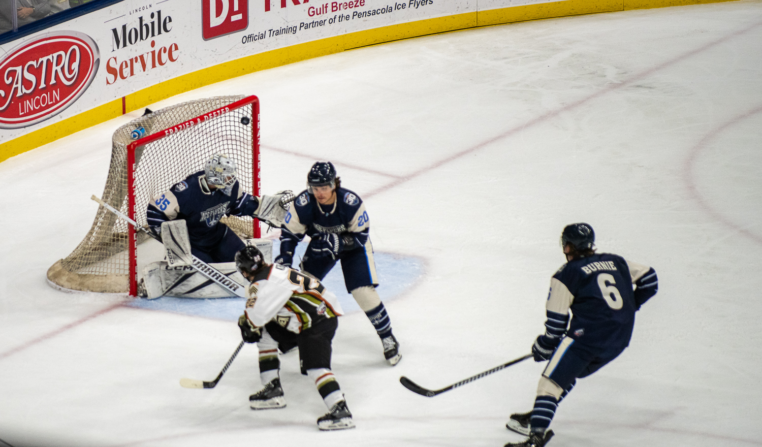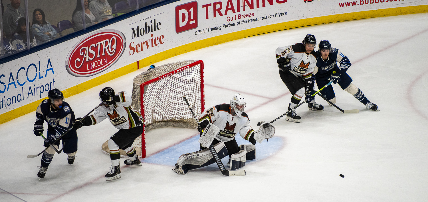 PENSACOLA, FLA. – The Ice Flyers showed out in front of 5,787 fans at Adult Jersey Giveaway Night, dominating the Fayetteville Marksmen with a commanding 4-0 victory at the Hangar.