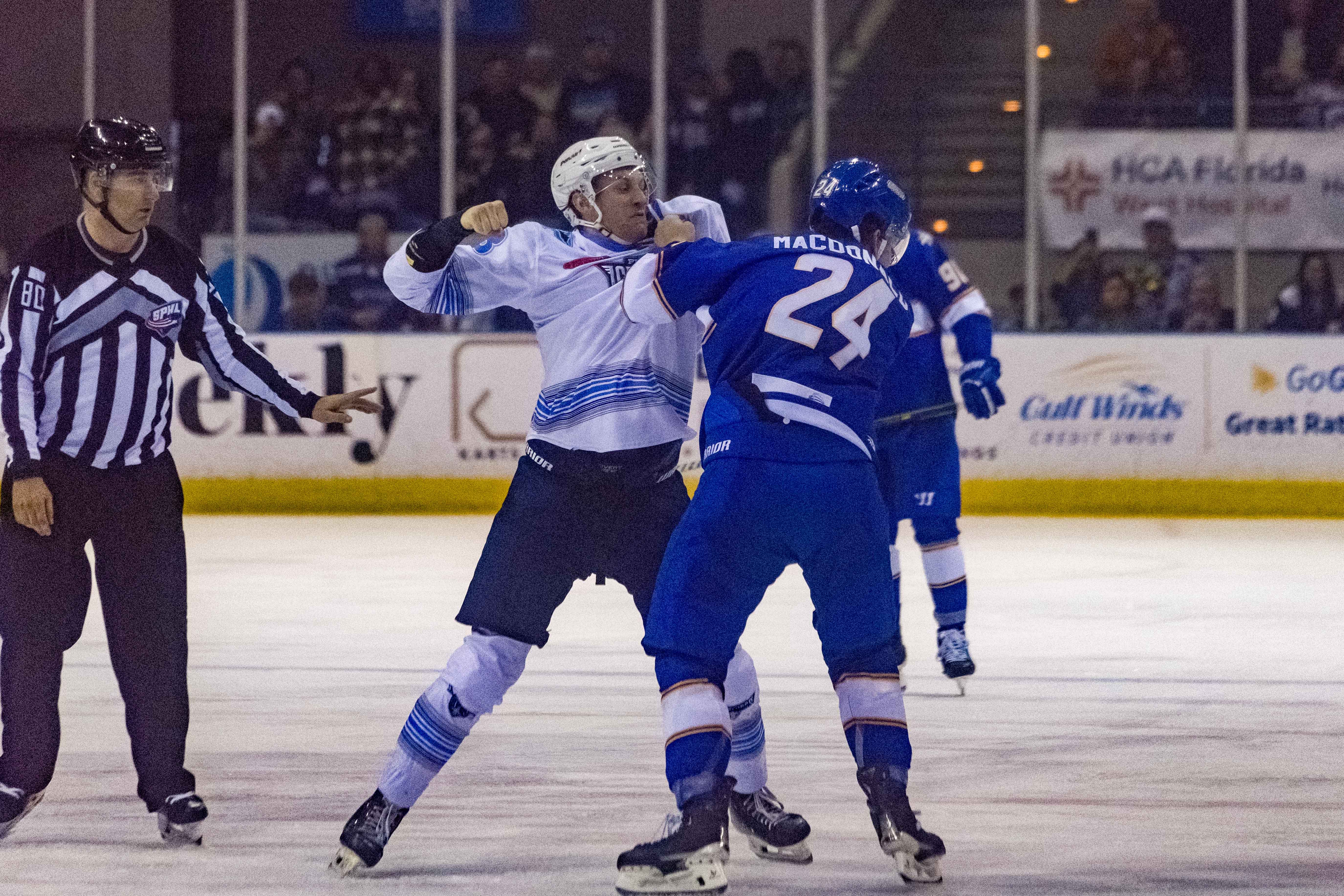The second period saw no scoring but plenty of action, as Ice Flyers’ Sam Dabrowski and Roanoke’s John MacDonald energized the crowd with a fight.