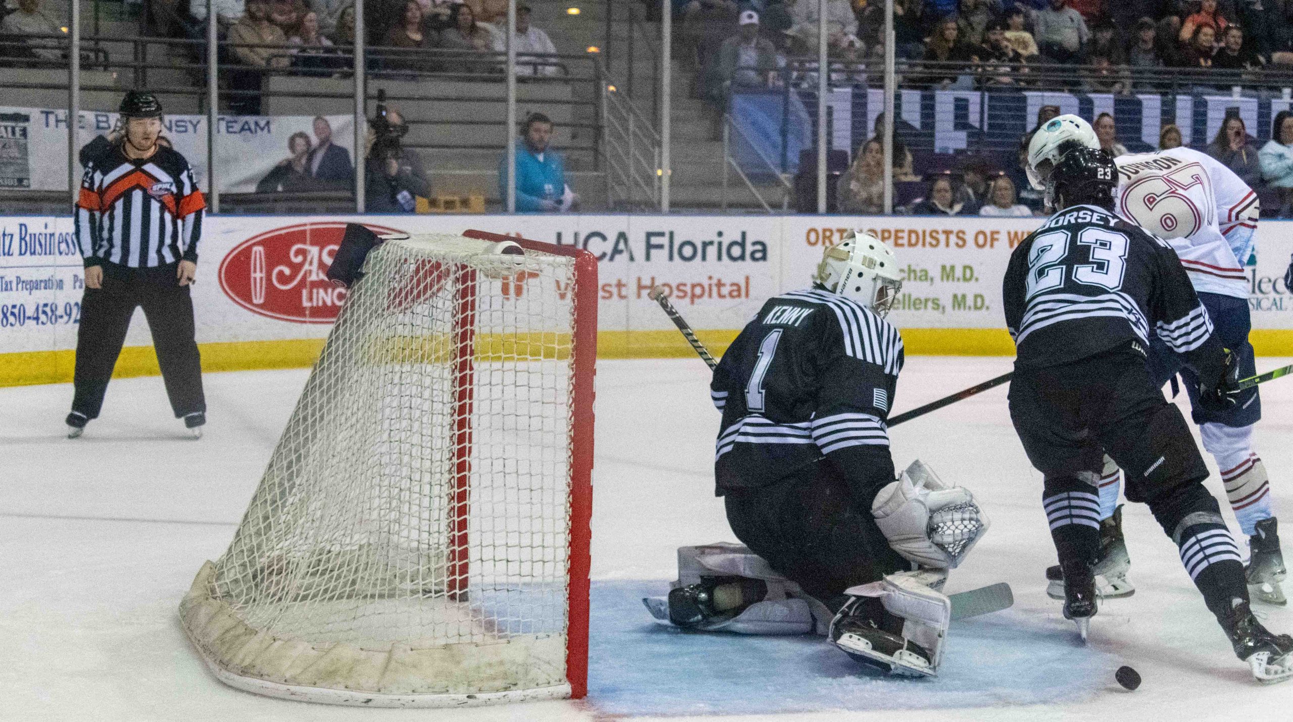 “I think we’re all jelling,” said Pensacola goaltender Stephen Mundinger, who made 34 saves – many of them creating reaction from the Bay Center crowd of 5,202 on the second annual Pensacola Bushwackers night.