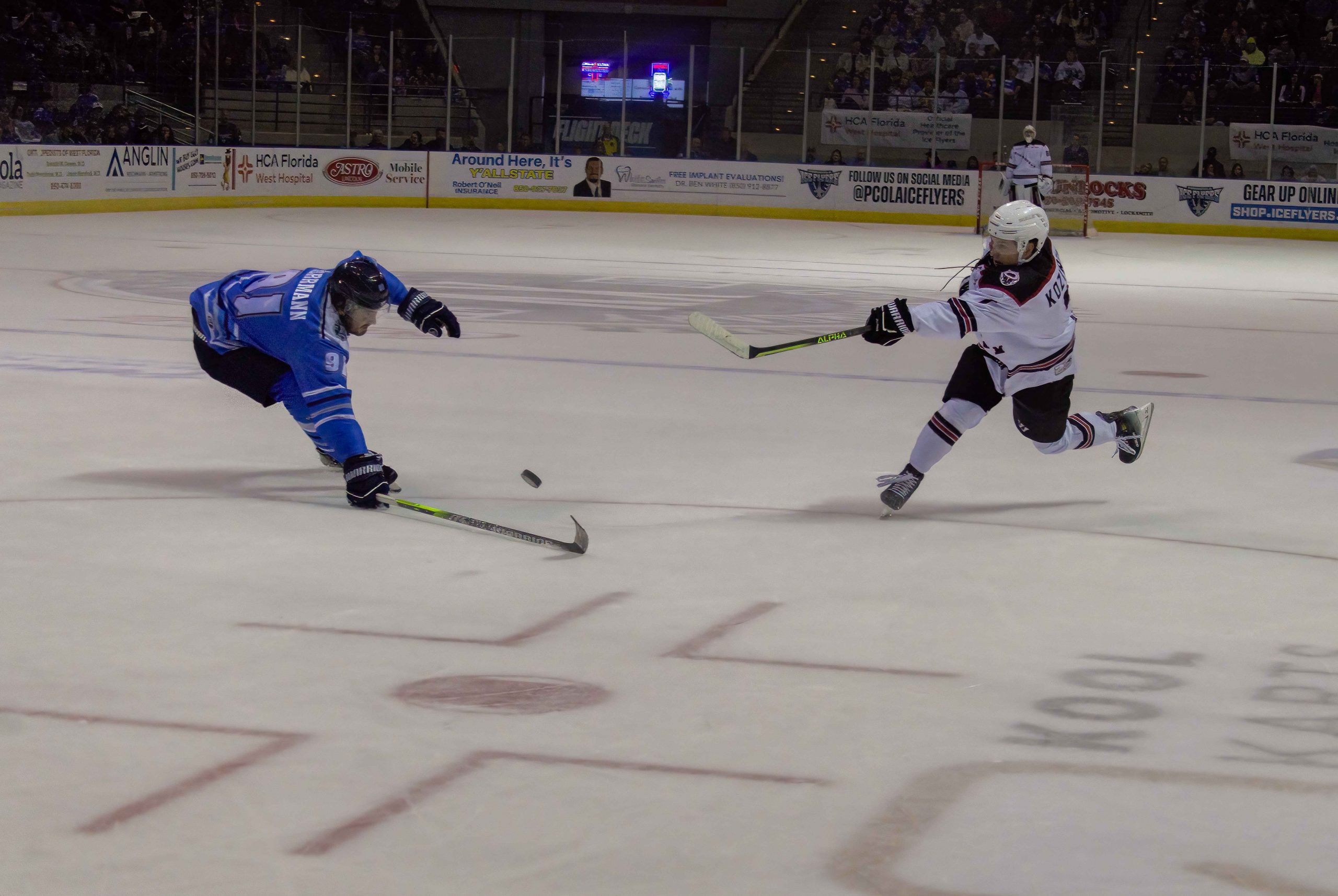 On the night after Christmas, a crowd of 5,418 filled the lower bowl of the Pensacola Bay Center on Youth Jersey Night. They watched the Ice Flyers twice rally with game-tying goals, but the final minutes proved elusive for another shot at a comeback win.