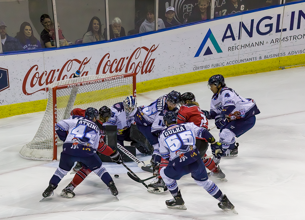 In the third, Kolten Olynek scored off the power play, with 38 seconds of fresh ice used, for Pensacola to get the even again, 2-2.