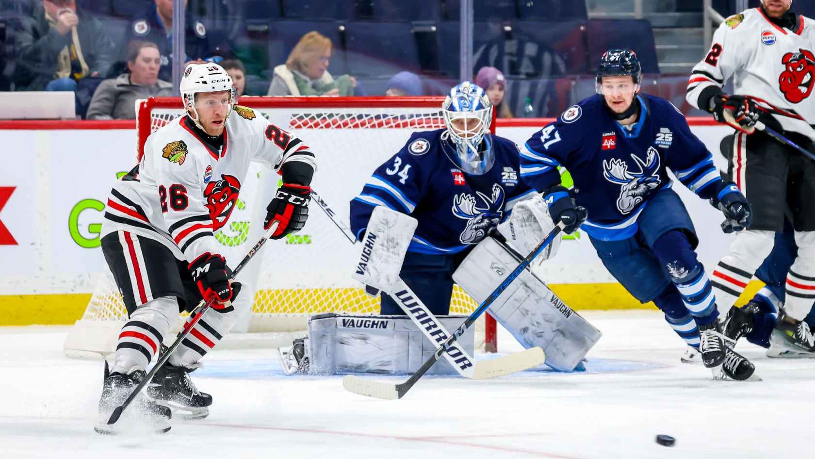 Manitoba, MB. – The Rockford IceHogs fell in a shootout Friday night 2-1 against the Manitoba Moose inside the Canada Life Centre. Gerry Mayhew scored in regulation and the shootout for the Hogs.