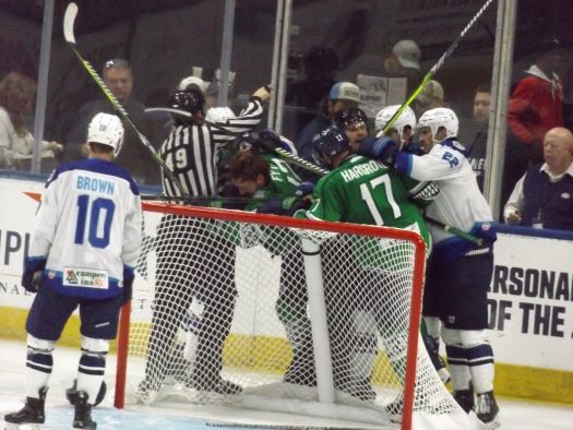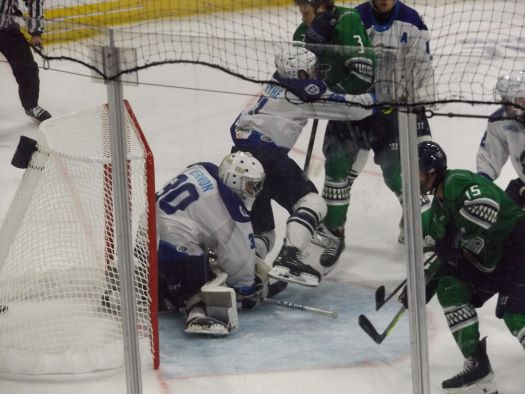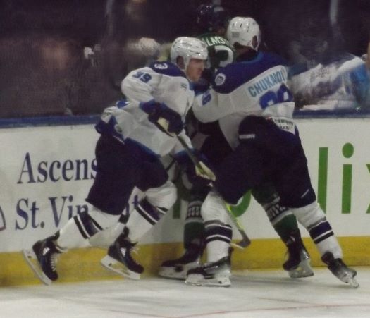 In second stanza Cockerill took a pass from Robert Calisti inside the Florida blue line, raced to the net and tapped the puck behind goaltender Cam Johson. The puck ricocheted in to give Jacksonville a 2-0 advantage