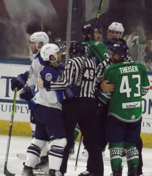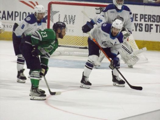 Jacksonville’s Logan Cockerill scored twice in the season opener for both clubs. The Icemen opened the scoring on Cockerill’s even strength goal in the first period. Brody Crane and Brendan Harris picked up the assists.