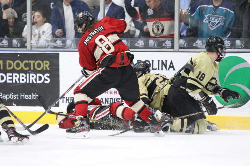 The third period would end up being the only scoreless period of the game. Josh Cannon, goalie for N C State would make 28 saves on 32 shots. Kal Maier made 37 saves on 42 shots for Wake Forest.