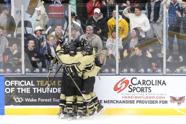 WINSTON-SALEM, NC: On Sunday, February 16, the N C State Icepack took on the Wake Forest Demon Deacons for the Atlantic Coast Collegiate Hockey League Championship. It wa N C State coming away with the victory in a nail biting 5-4 match.
