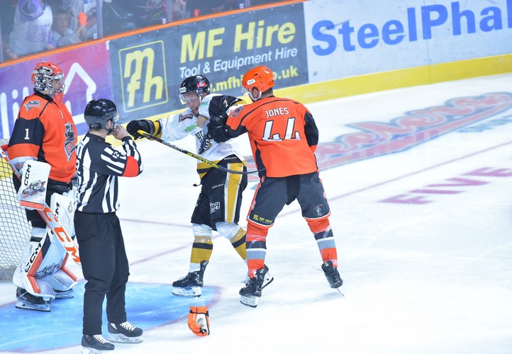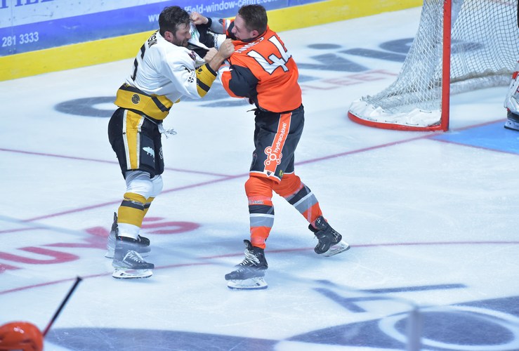 All hell then broke loose shortly afterwards as Tansey was cross-checked from behind and he made short work of his man at the boards before Jones and Anderson squared off and both were ejected from the game for removing their helmets. The entertainment certainly brought the near capacity crowd to their feet, and they made their appreciation well known.