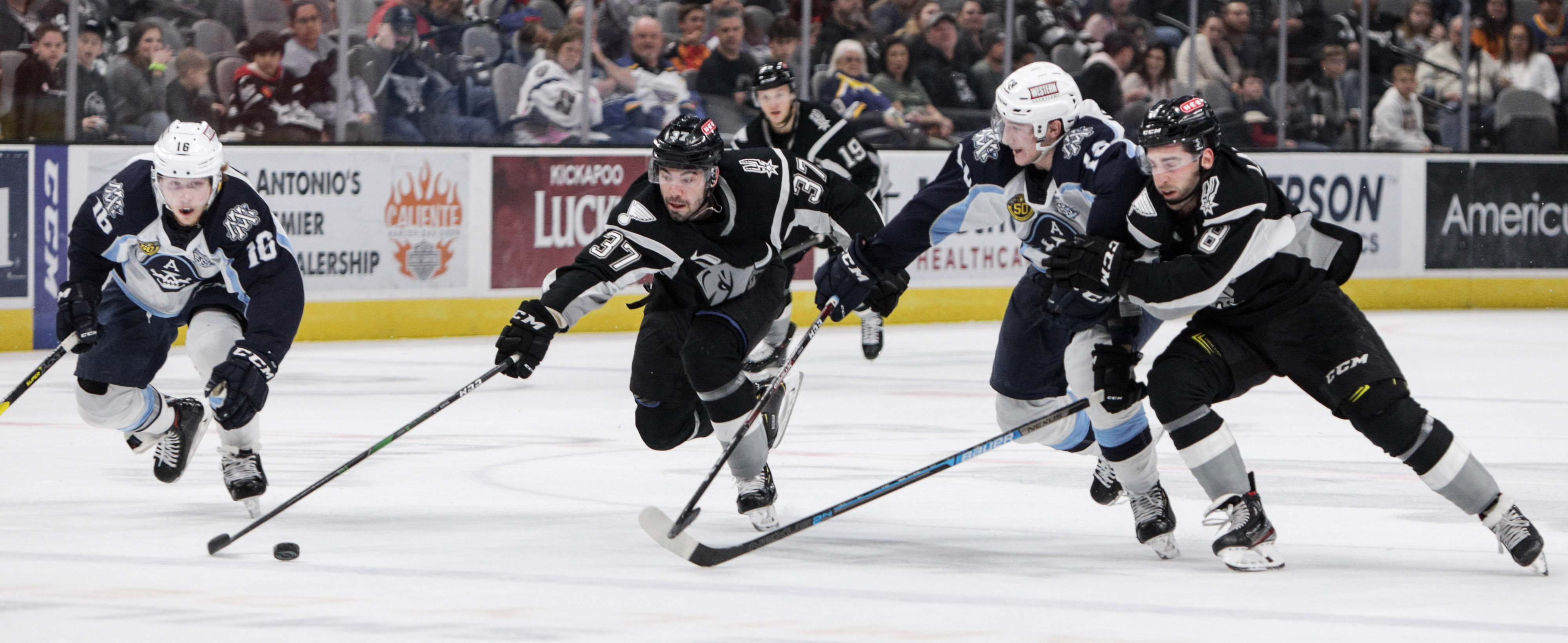 The Milwaukee Admirals play the San Antonio Rampage during the third period of an AHL hockey game, Sunday, Mar. 8th, 2020, in San Antonio. (Domingo Muñoz Jr/AHL)