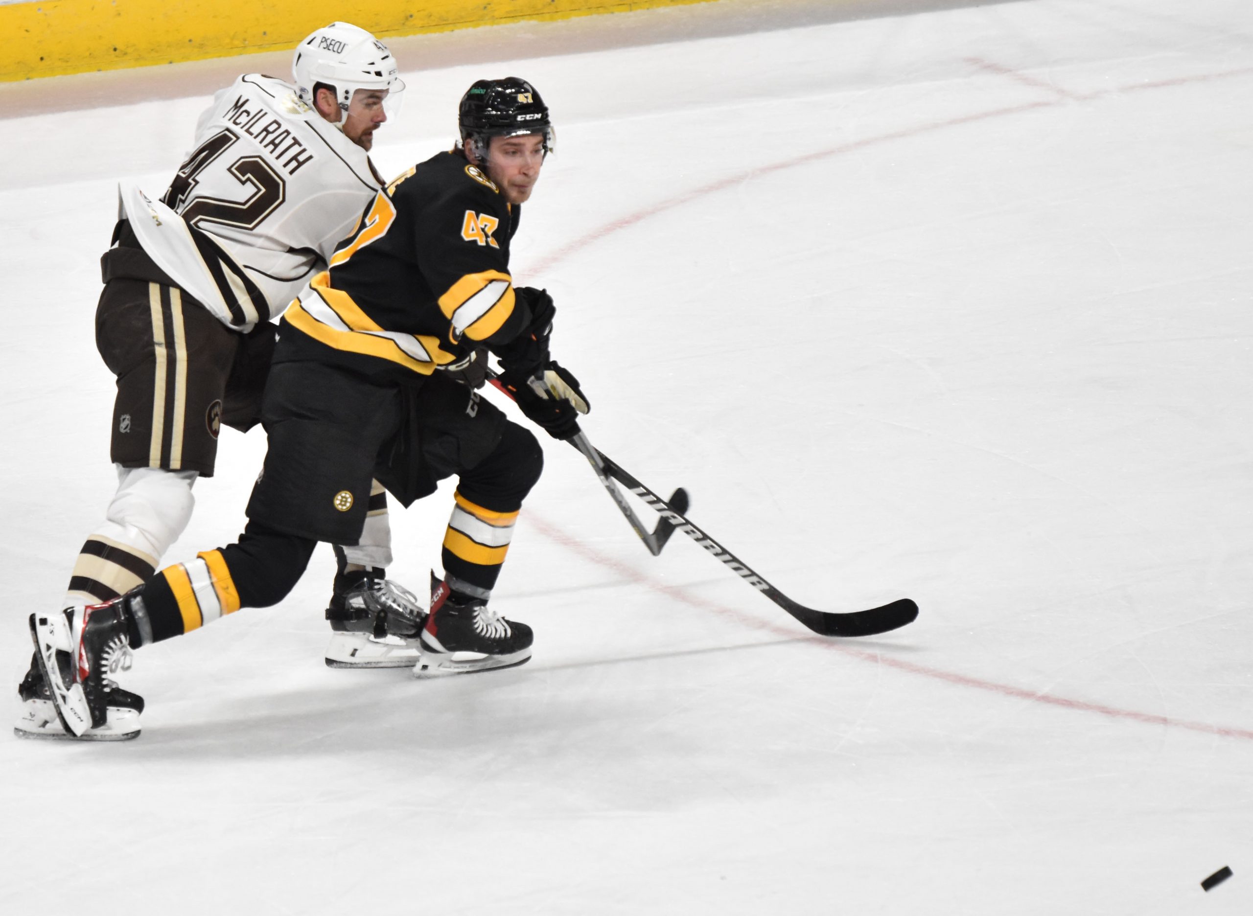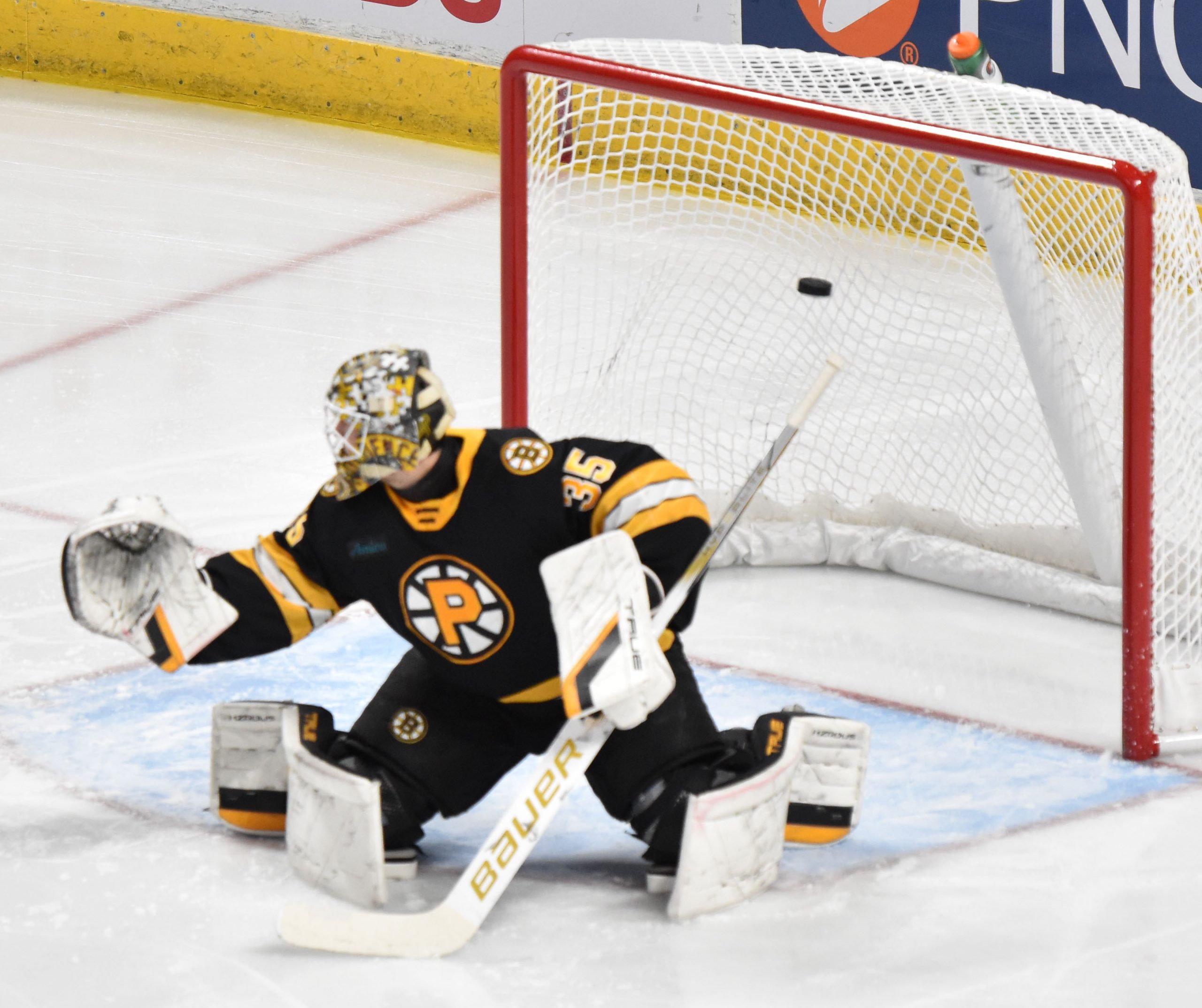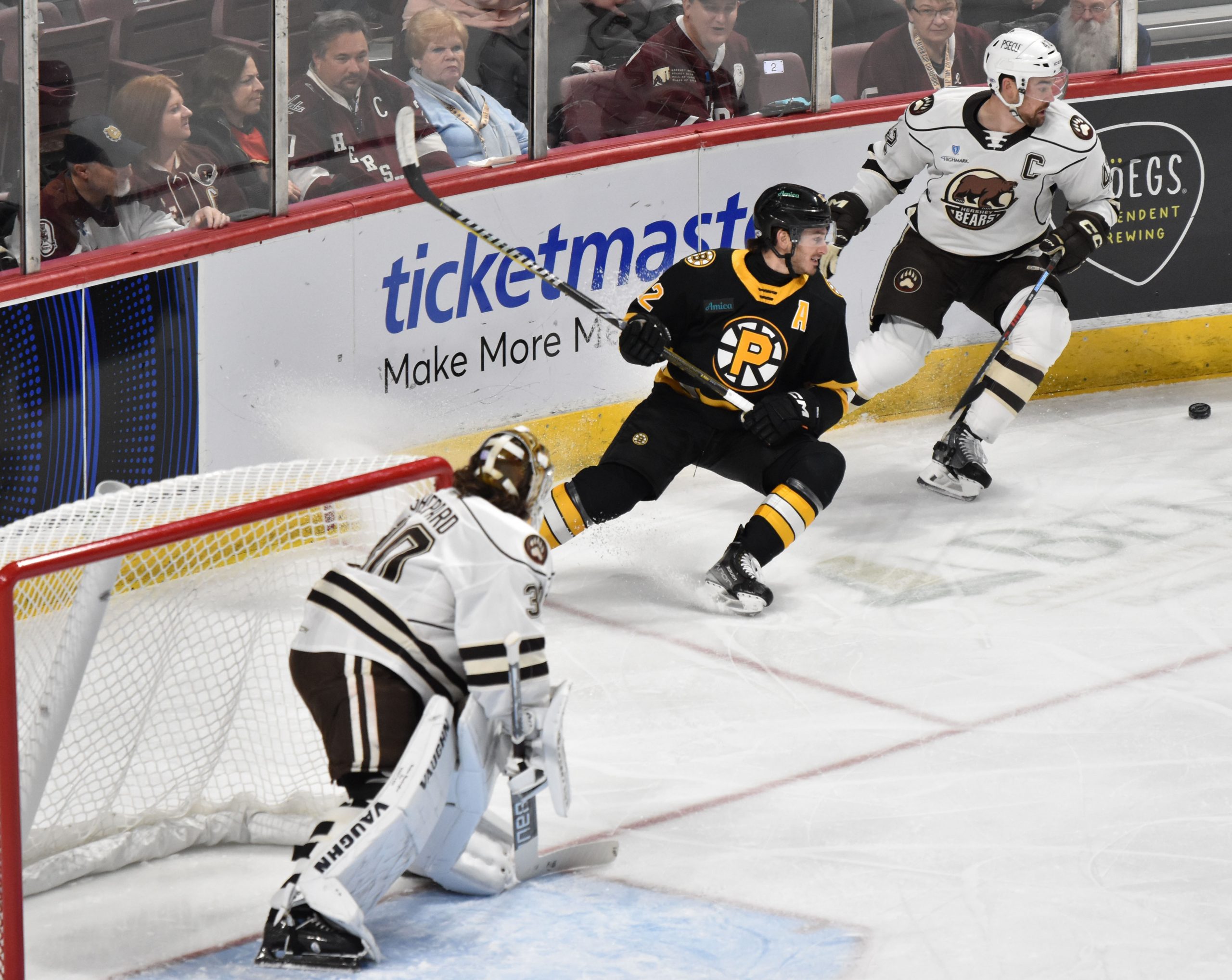 The Bruins then took a 2-1 lead with a power-play goal at 18:58, as John Farinacci stole the puck behind the Hershey net and fed it in front of the cage for Georgii Merkulov to put past Shepard.