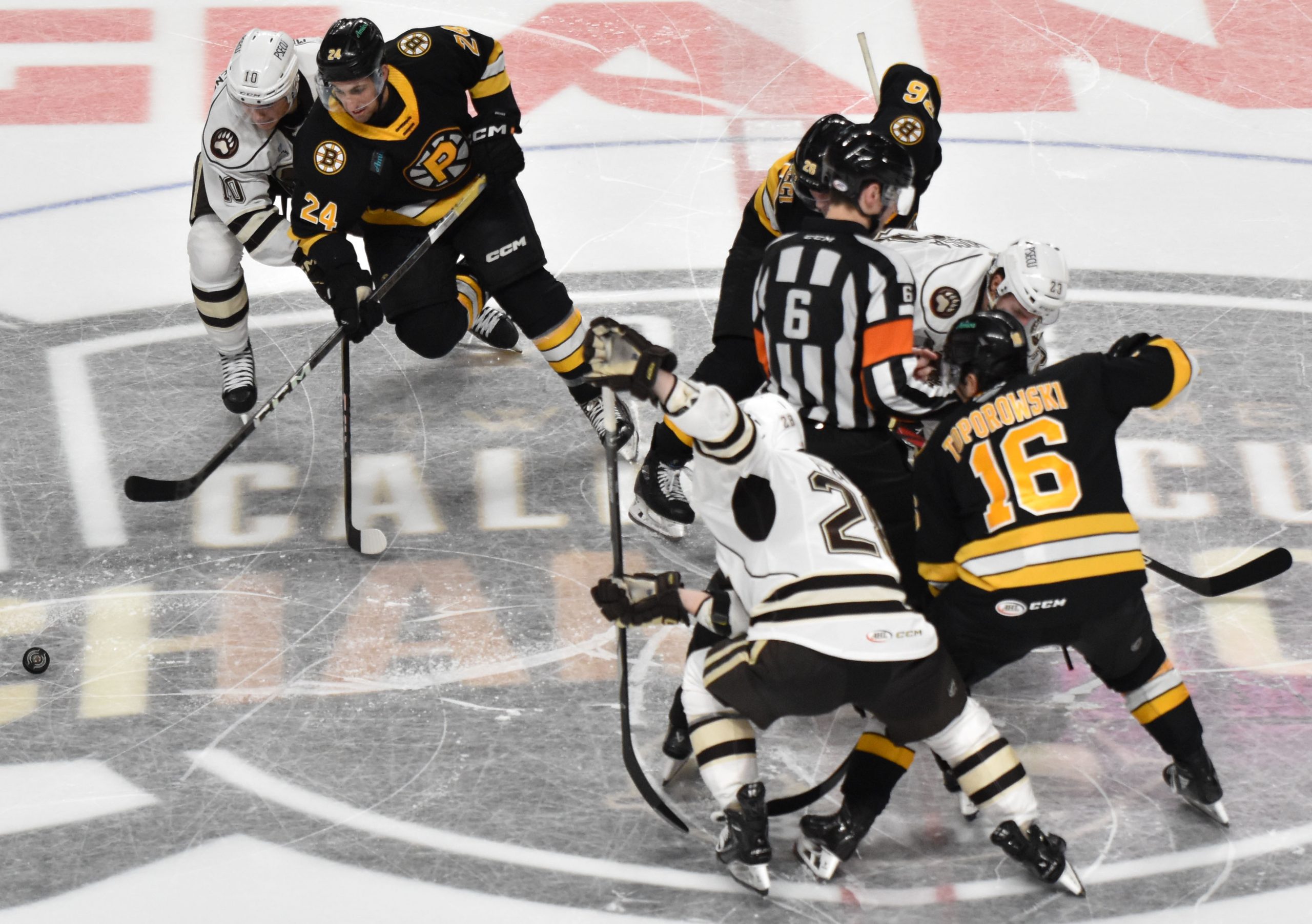 Shots finished 26-23 in favor of Hershey. Shepard stopped 24-of-26 shots to earn his 10th victory of the season; Bussi took the overtime loss for Providence with a 20-for-23 effort. Hershey went 1-for-3 on the power play; the Bruins went 1-for-5 with the man advantage.