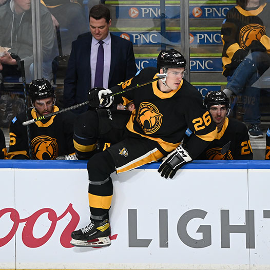 Bridgeport beat Penguins goaltender Tommy Nappier (0-1-0) twice on 10 shots in the opening eight minutes and never looked back. Following an early save from Skarek on one end, Terry grabbed Koivula’s cross-ice pass through the left circle in transition and tucked home Bridgeport’s quickest goal to start a game this season, just 39 seconds in.