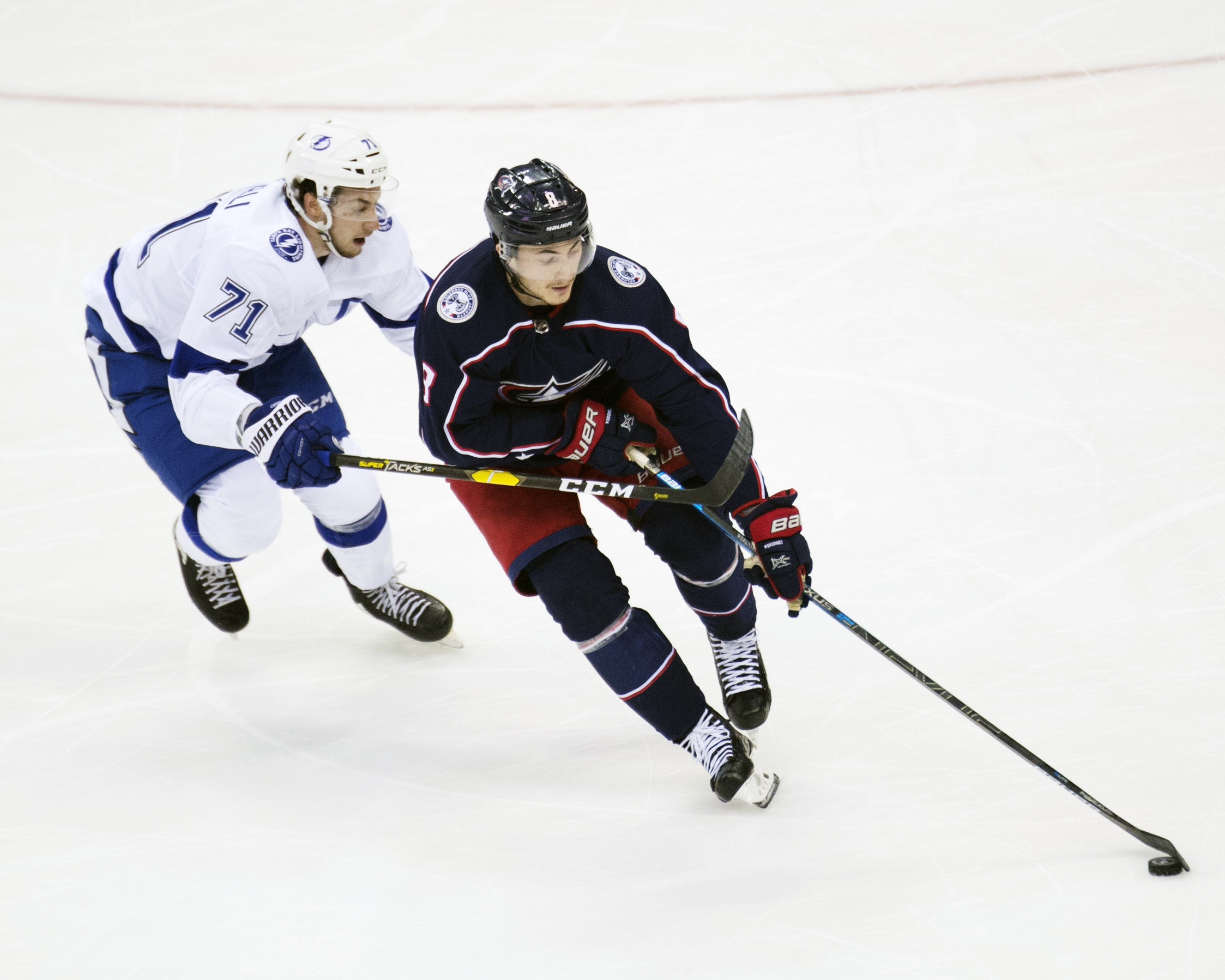 Both teams went back and forth taking shots on net. The Jackets came out with a hard forecheck against the Lightning, taking 8 shots on net to Tamp bay’s7. Columbus drew first blood with a power play goal scored by center Alexander Texier, assisted by Seth Jones and Pierre-Luc Dubois at 2:26. Pierre-Luc Dubois lit the lamp at 3:48 with a backhand assisted by Oliver Bjorkstrand and Adam Clending.