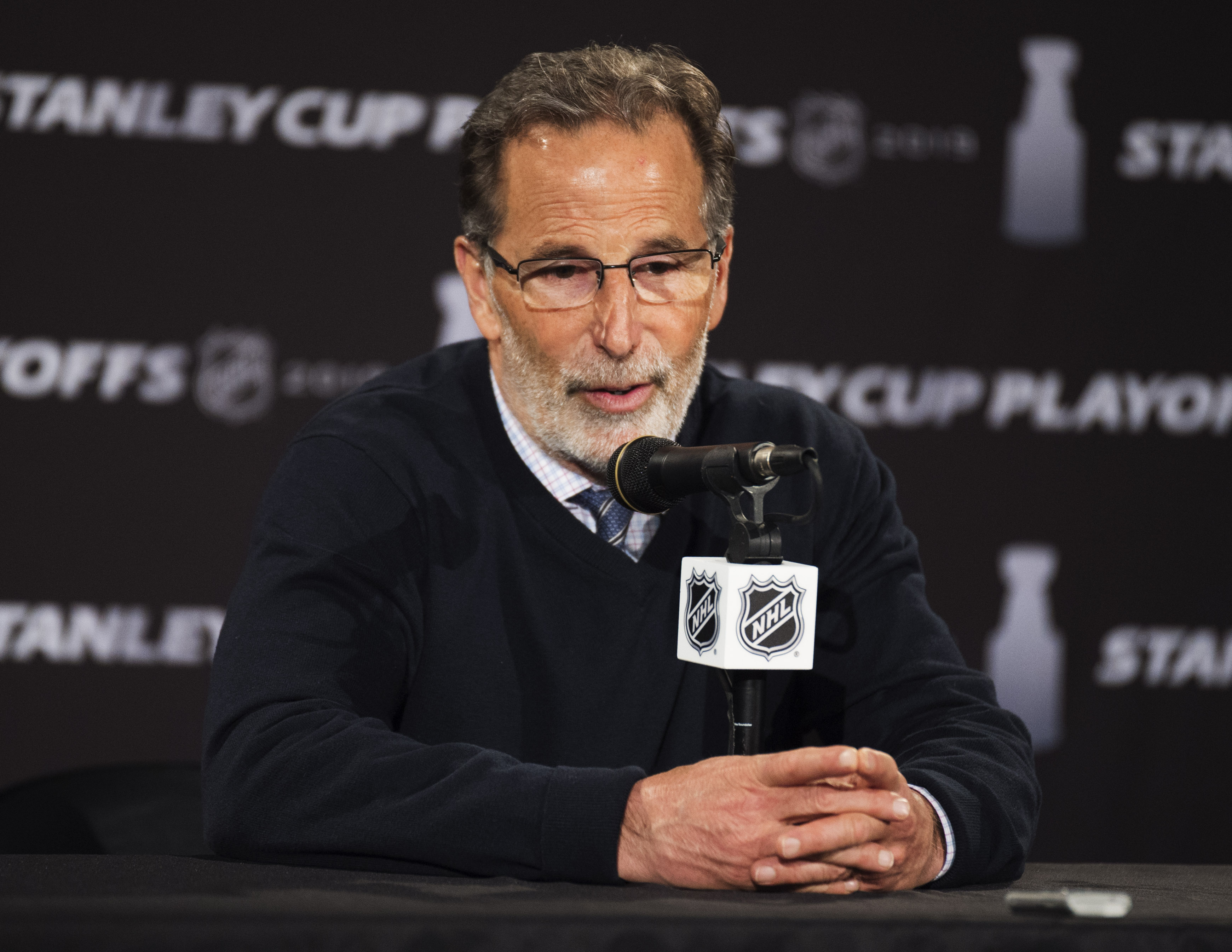April 14, 2019: Jackets head coach John Tortorella adresses the media after his team swept the Tampa Bay Lightning in their game in Columbus, Ohio. Brent Clark/Pro Hockey news