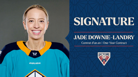 MONTRÉAL, QC– The Montréal Victoire announced on Friday that the club has signed forward Jade Downie-Landry to a one-year Professional Women’s Hockey League (PWHL) Standard Player Agreement for the 2025-25 season.